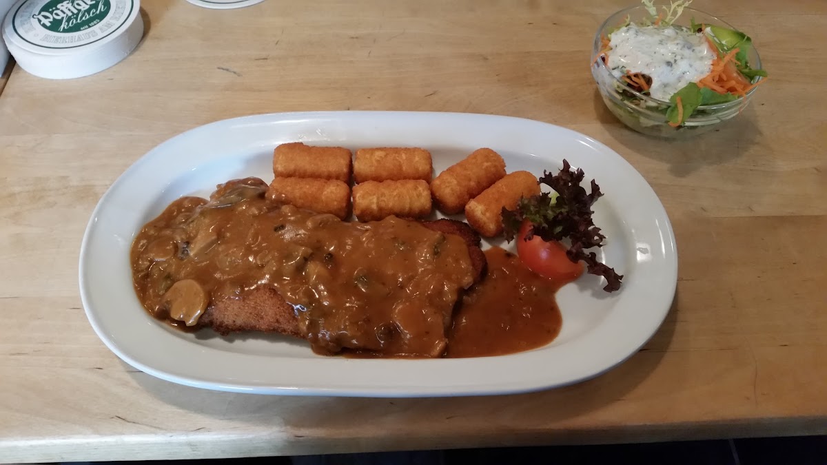 Excellent food, but service could be better. I enjoyed the Brauhaus Rhamschnitzel mit Champignon Sauce quite a bit. The waiter was a bit crass with us even for German Brauhaus standard, however. This would have been fine if the price wasn't on the steeper side.