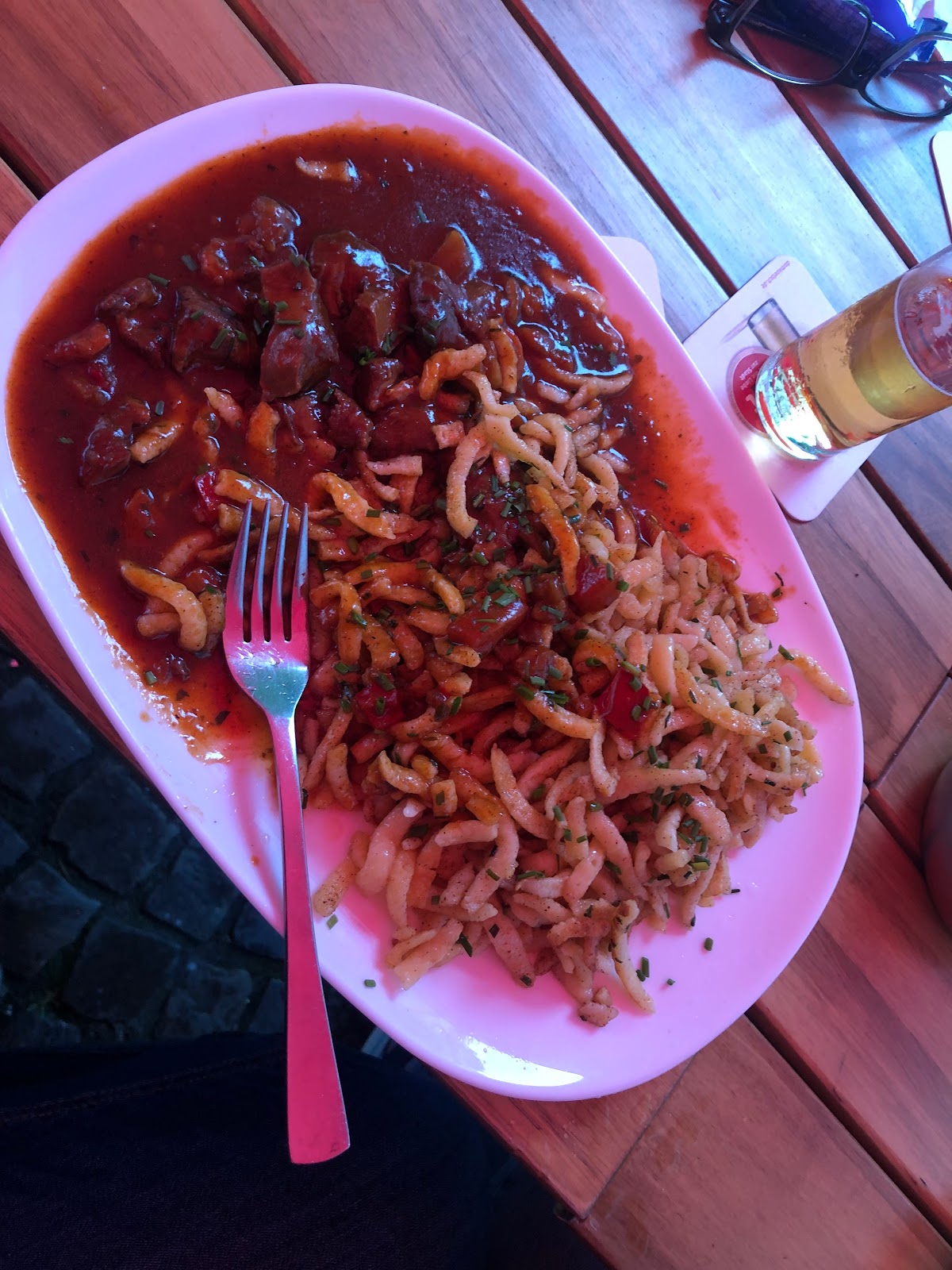 Wow! I had medium expectations, as I couldn't tell this was a restaurant at first glance from the outside. We had the Chili Con Carne, Meatball snack, and the Currywurst. The Chili Con Carne was fantastic, as it had a little Mediterranean kick to it, I would recommend. The Meatball snack was flavorful and cooked perfectly. Being from Texas, this was our first experience with Currywurst. The sausage was incredible, and the sauce/fries were delicious! The waitress/bartender was very friendly and helpful. I would recommend anyone go here for drinks, dinner, or both!
