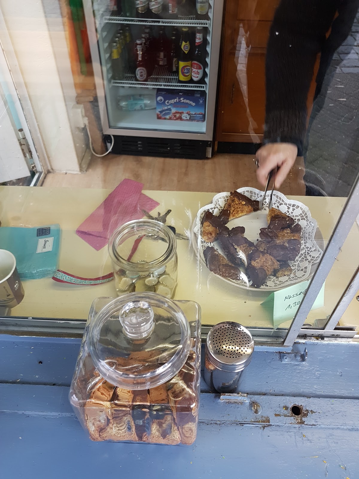 Zufällig vorbeigekommen und spontan verliebt. nicht nur, dass sich für die Süßkram-Bestellung (2 Schlümpfe, 2Kirschen, ach, doch nur 1...)meines Patenkindes richtig Zeit genommen wurde, sondern auch der Kaffee ist richtig, richtig, richtig gut. Und dann noch Umweltbewusstsein (nur Mehrwegbecher) und ein Bücherregal. ♥️