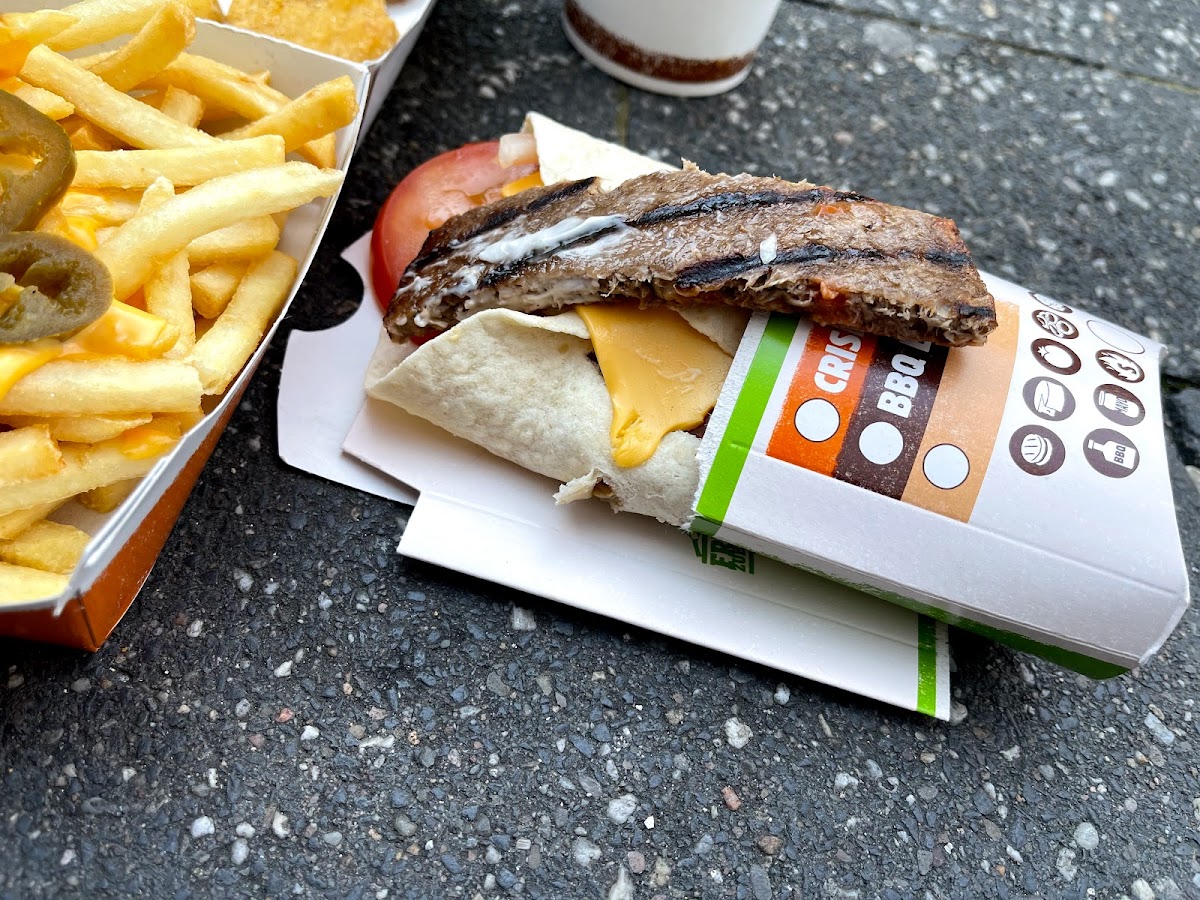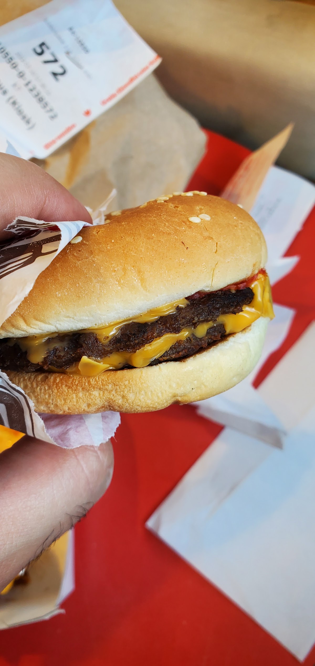 Burger was cold as room temperature, bun hard that needs a drink to swallow and the cheese like rubber... you would expect that from a burger that was prepared more than an hour ago...