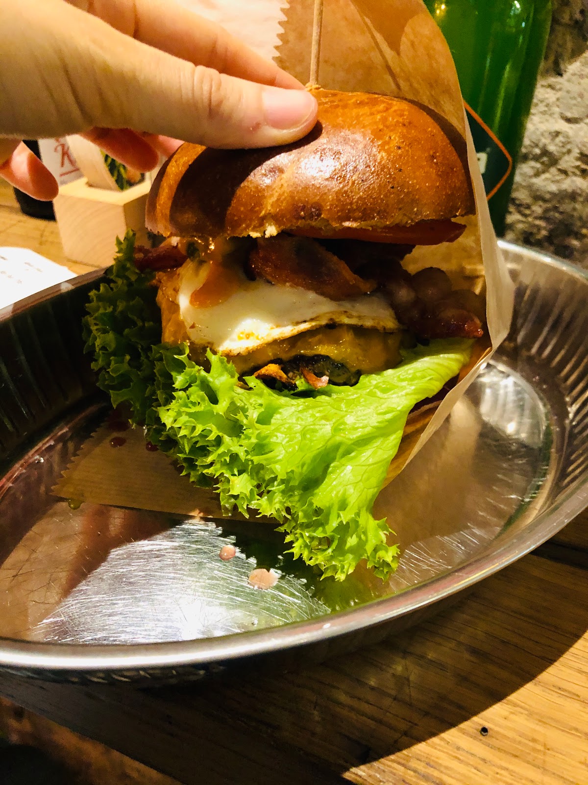 The name of the burger is the name of the restaurant. Everything is fresh and the meat is very juicy and tasty. They made many burgers at a time and the buns were rested aside for a long time, so when the burger was served, the buns were cold. I like the fries as well. You could tell it‘s made by fresh potato instead of frozen fries. Generally, it’s a tasty burger.