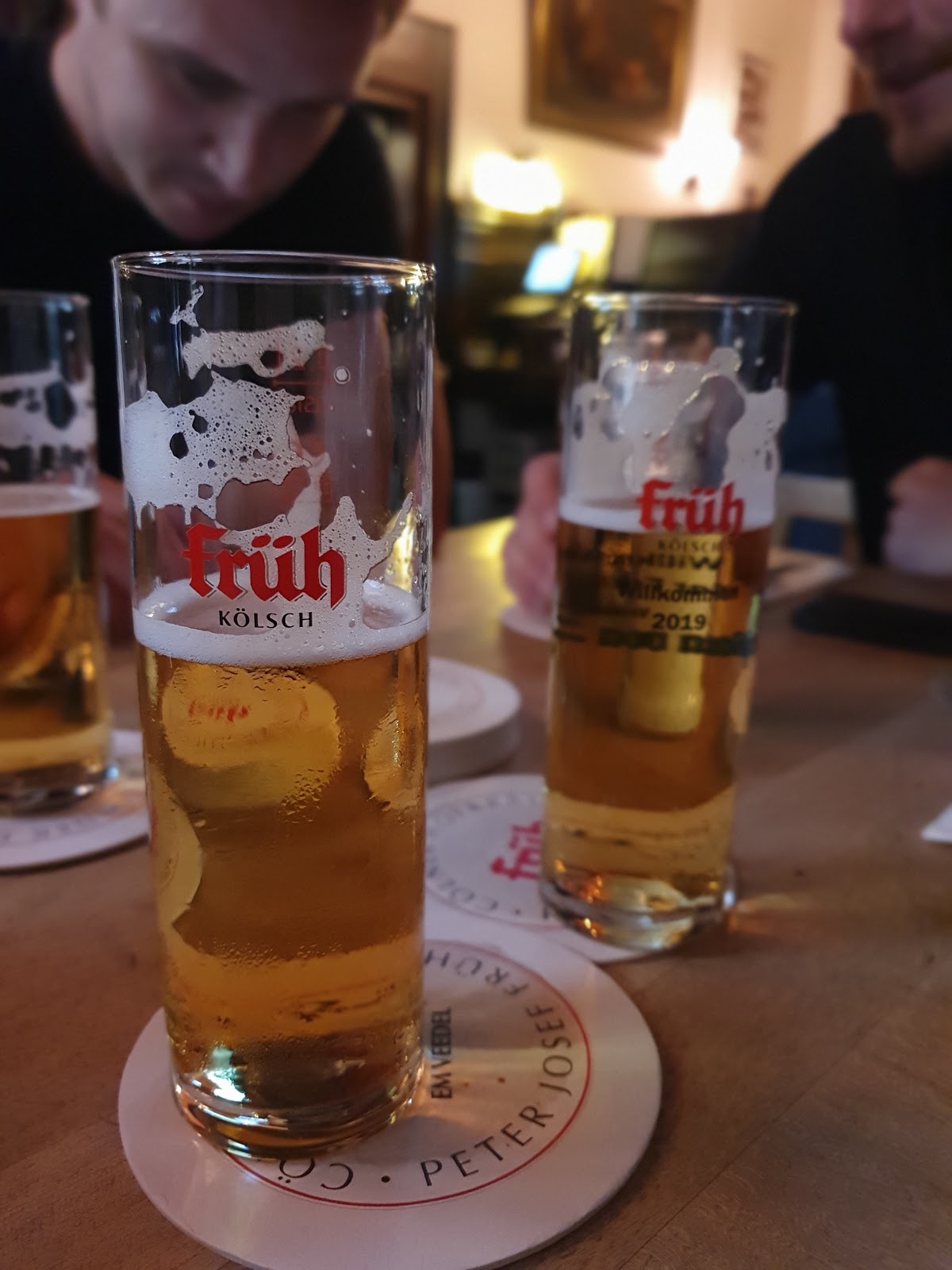 If you don't put a beer mat on your glass they keep delivering tiny glasses of beer when you run out. It's excellent, the food is very very local German too. Local kolsch beer served straight from a tiny barrel at the end of the bar that's replaced several times a night.