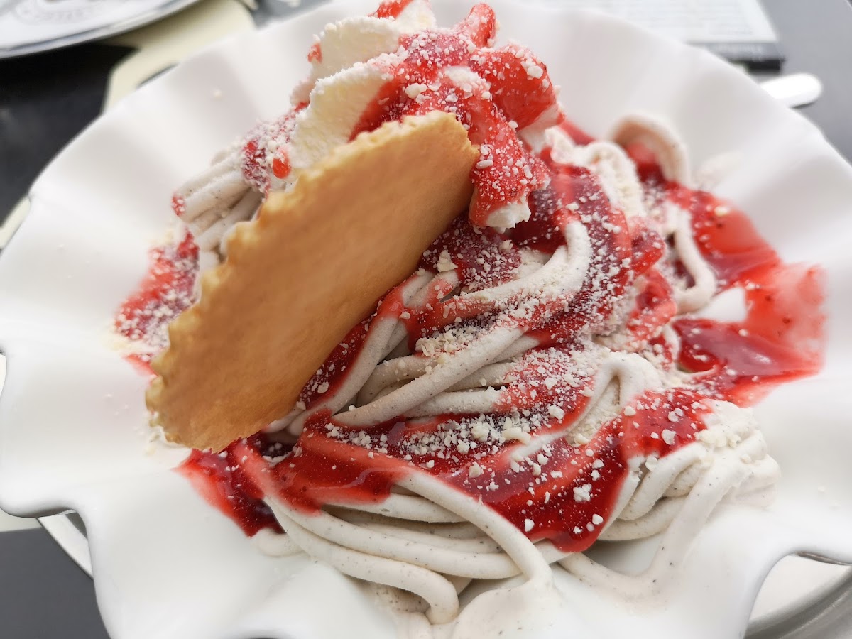 I stopped by here in a rainy day. The ice cream was really good. However, my experience was bad here. I order one scope in a cone and came outside to sit on a tiny bench and have my ice cream under the roof. It was just me and no one else outside. Suddenly a waitress came and ask me to leave my seat as I paid for to go price. I can understand that for sure. But when it is rainy and no one is there to take the place they could behave nicer (having more empathy I meant) and not sending me outside under the rain with my ice cream. I liked the location but perhaps I won't come back.