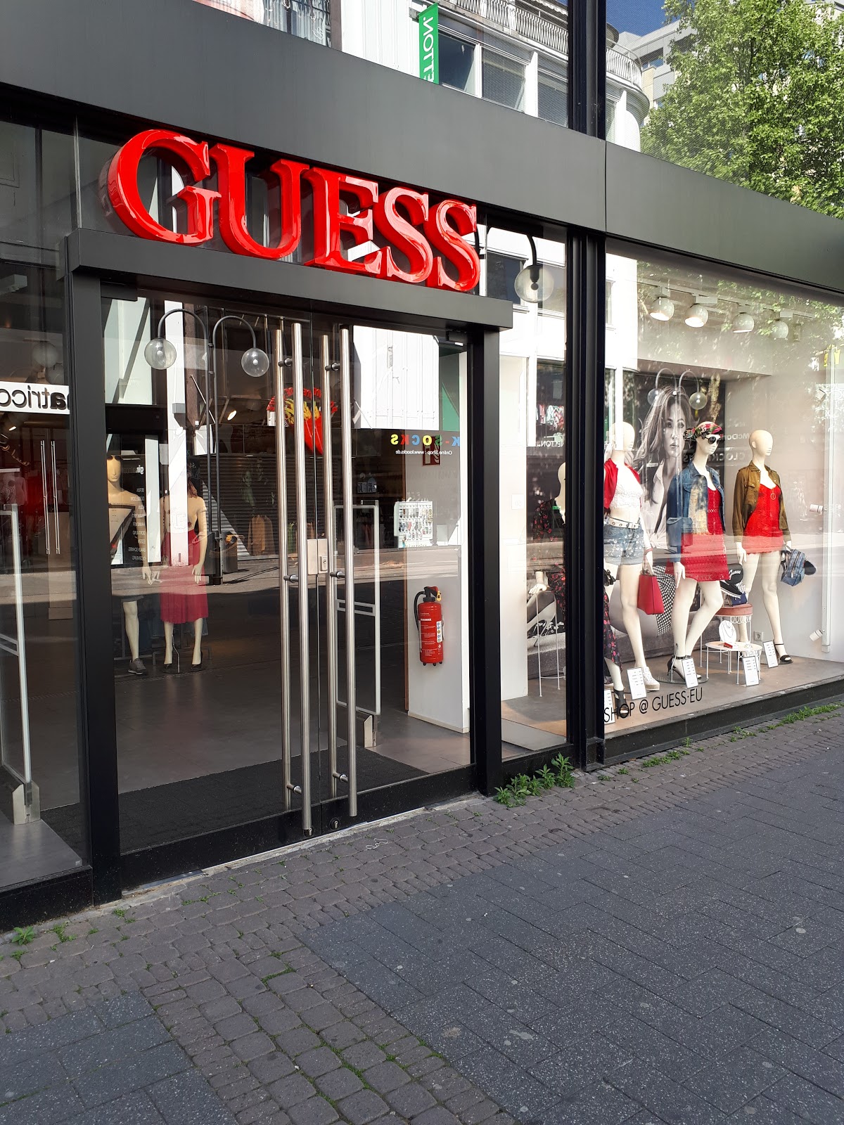 (Translated by Google) actually I love Guess, but not this branch. 2 stars for the two employees who were at the checkout today. But couldn't compensate for the primitive and disrespectful behavior of the assistant at the changing rooms. Pamped me through the closed door because I had dropped a shirt from the non-existent shelf, said I had thrown goods on the floor and then started a discussion in front of all customers through the locked door. Thanks, great customer service, thumbs up. ???????? Just to learn next time ... wrong: Ey! Don't throw our goods on the floor! ”Correct:“ Sorry, you seem to have fallen a bit. ”Is not difficult. Should be a matter of course in a Guess branch. You don't have to hire everyone ...