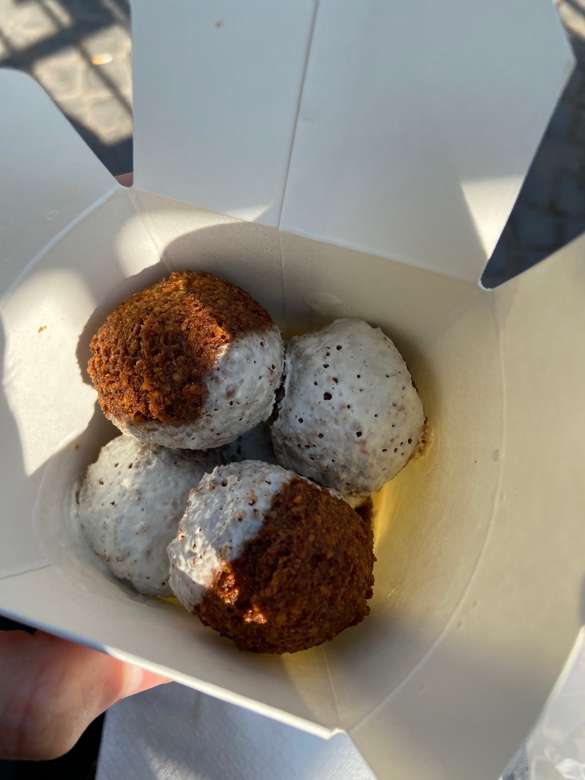 Good falafel. But a little too fresh and not as savoury as I expected it to be. Had a falafel plate. The hummus is of supreme quality though. Though the portion served is a bit small. The second time I came, had the Fascha and a falafel box, which was average, everything tasted alright, just the oil content was a bit much for me and falafel is also alright but not the best in the city, surely.