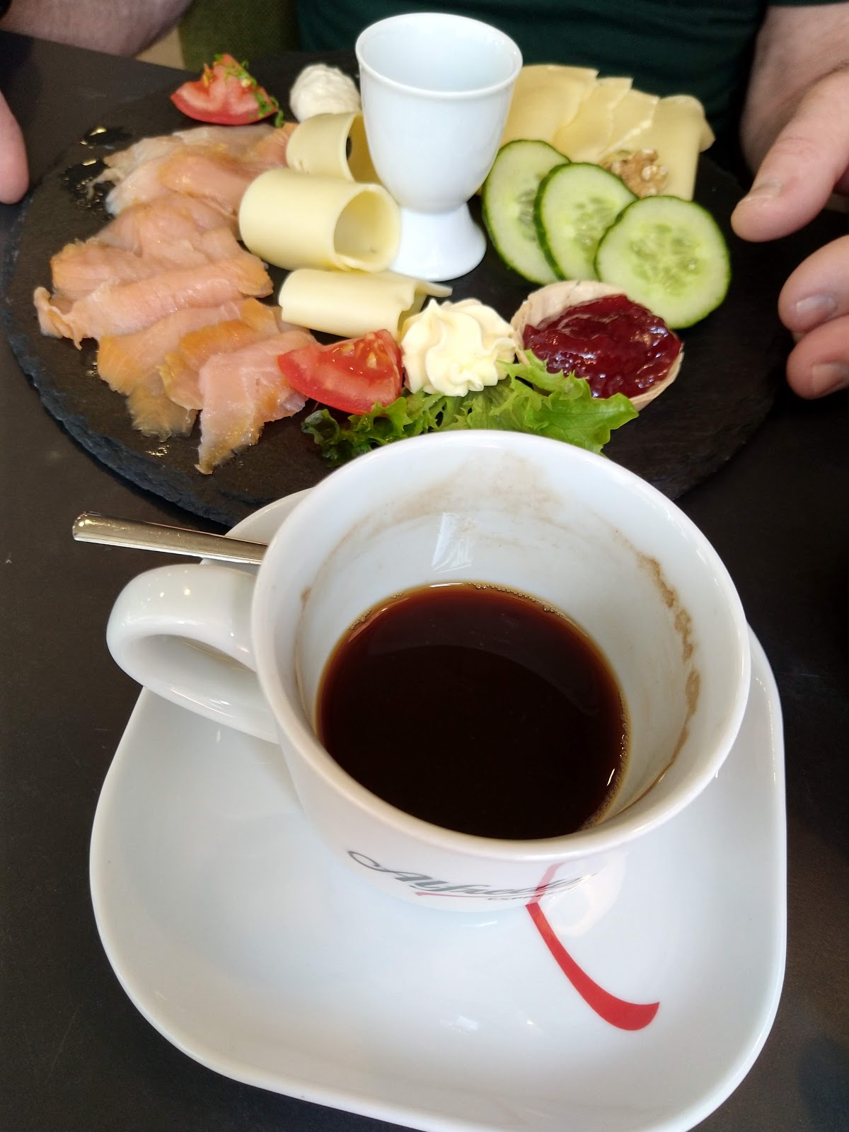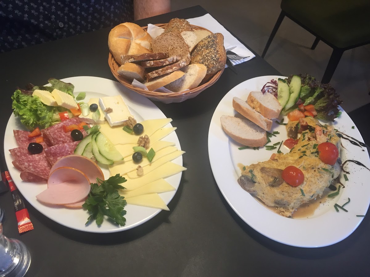 Delicious breakfast. The bread is warm and good, there seems to be good quality in all we had. Breakfast for two with enough food, two small juice and two espresso for almost 20 Euros. The service was really good as well!