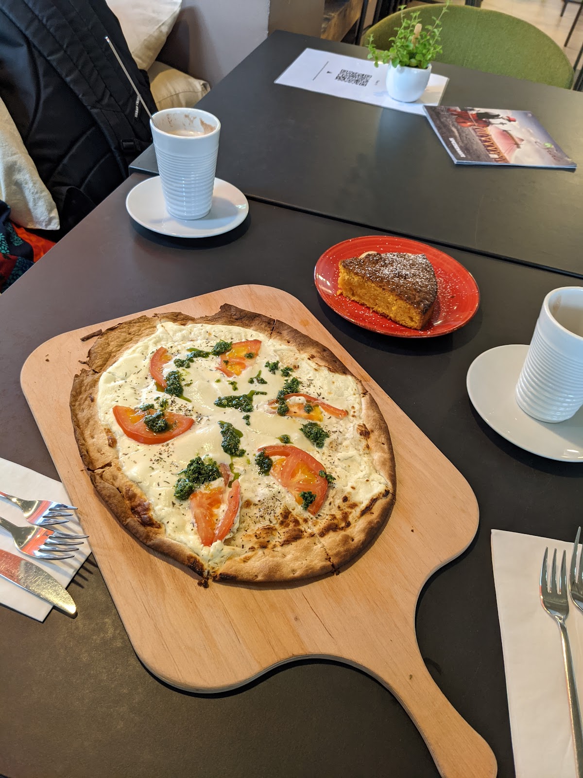 Nice place, lovely people, and great atmosphere. We ordered two hot chocolates, a Flammkuchen (with great crust!) and Möhrenkuchen. Tasted amazing! 10/10 would visit again.