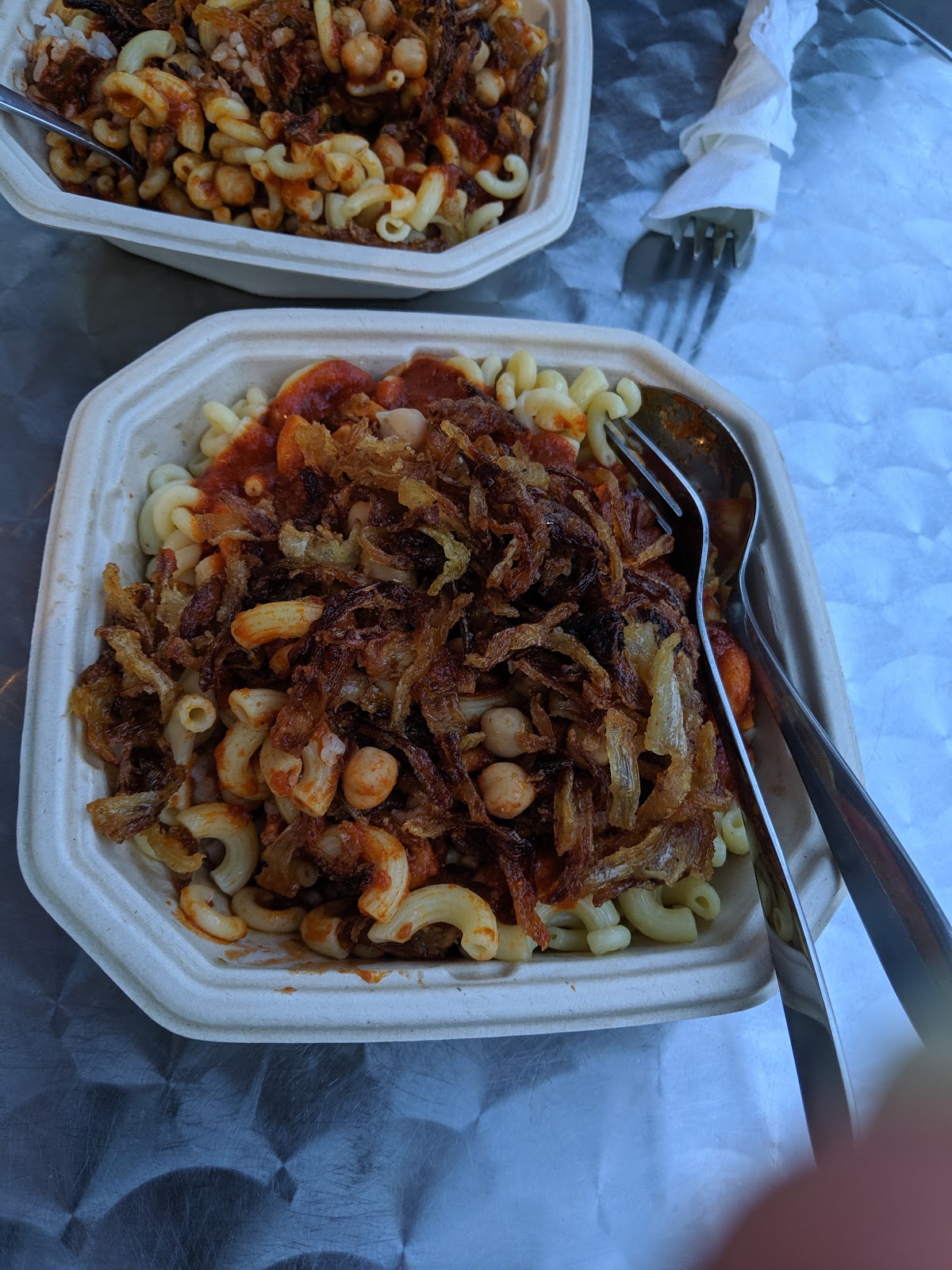 The staff member told us that he made these last two dishes cause they are out of rice. But I didn't think that the dish would have so little rice and be mainly pasta! I didn't like it and I returned it. The staff member was very friendly and he gave me money back right away. I'm Egyptian and I love koushary and this was so far from what I'm used to. My advise is that they don't serve any dish unless they make sure it's all balanced and wait until they make a new batch. Best of luck for them tho.