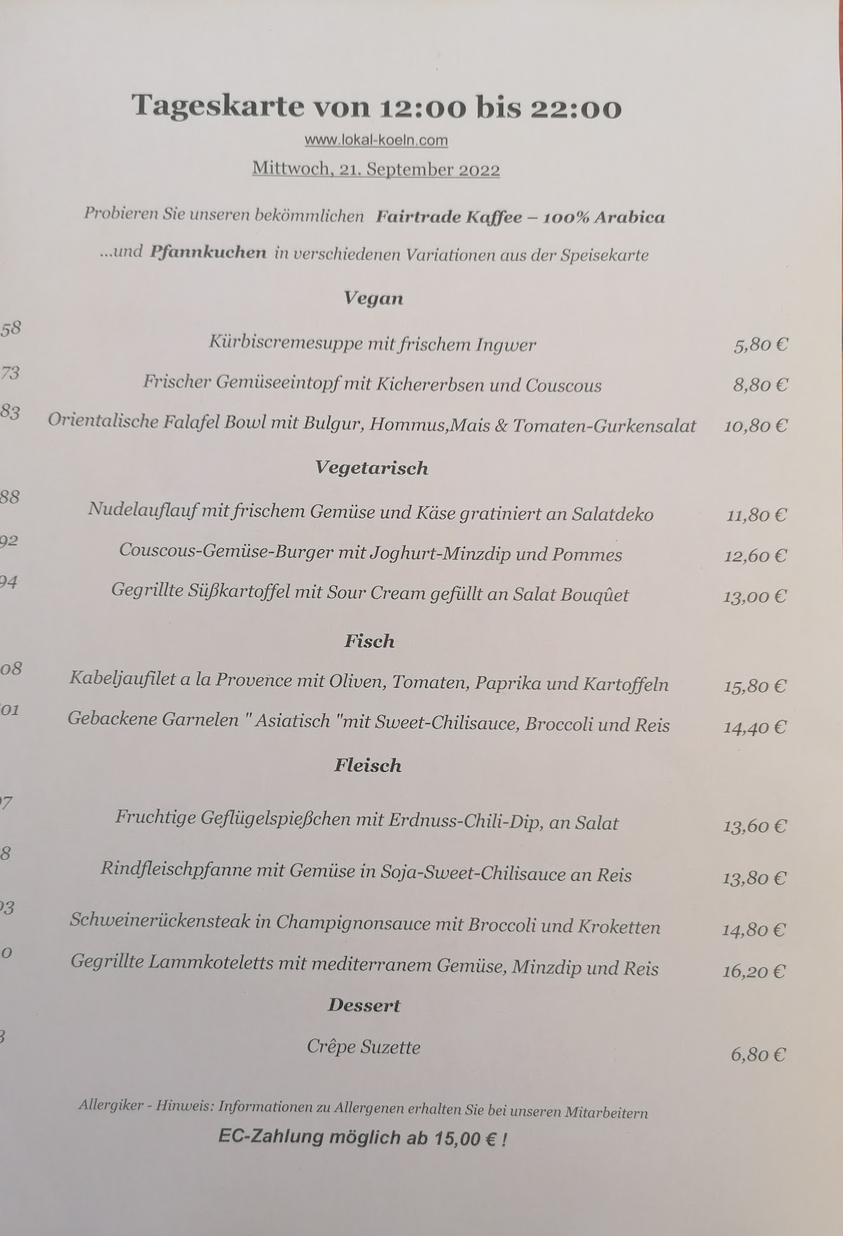 The location looks nice, but the service is absolutely horrible and rude. In addition to unfriendly remarks during our visit as a group, the waiter we had (an older, bold man) made my individual bill before I left. The total price amounted to 12,60. Instead of correctly returning 2,40 (I gave him 15), he included a tip for himself (saying I had to pay 13) and gave back 2. I was too astonished to even speak up against it.