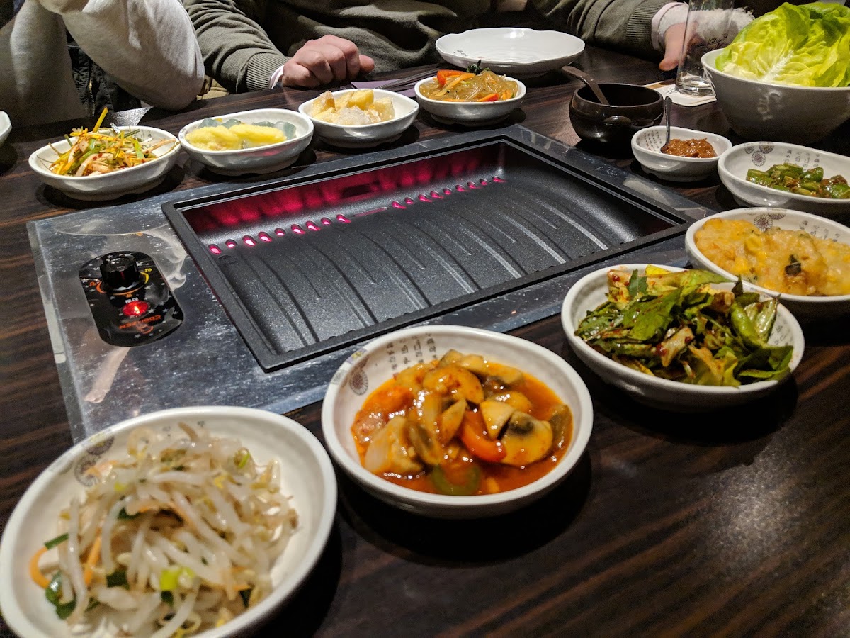 Great selection of side dishes, though not as traditional, despite having 3 choices on their menu; which cannot be shared and have a set amount of meat provided for each, which quickly becomes too much when they force each person at the table to get their own and unable to share.