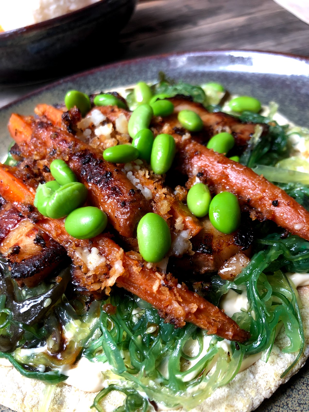The place serves naans with a variety of different toppings – from things French to Italian to Middle Eastern to Far Eastern. I had the naan with tepanyaki pork, edamame, miso carrots and wakame.