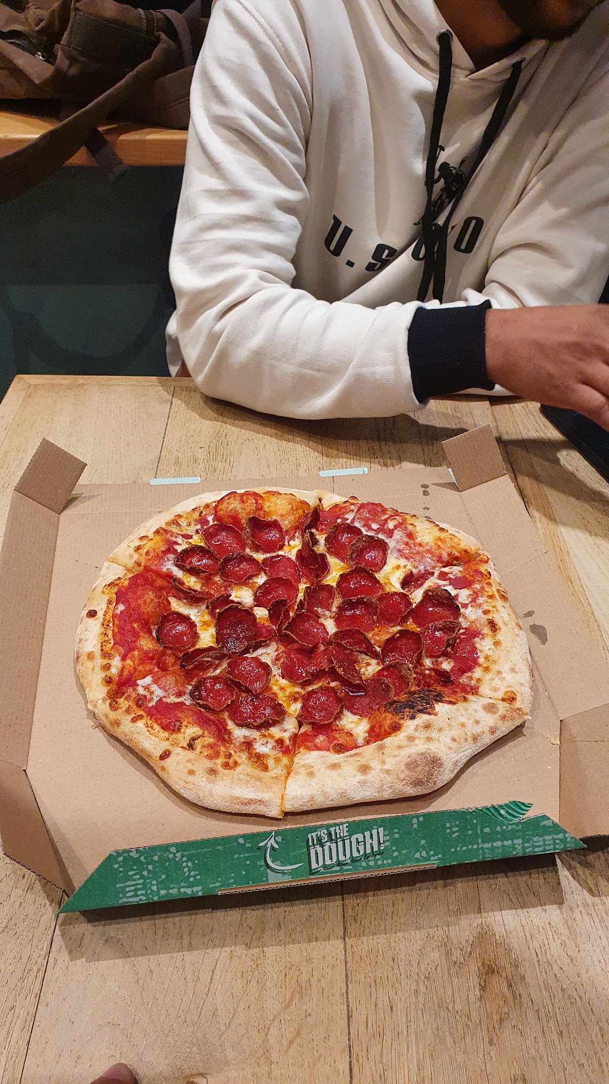 One of the best pizza and garlic bread I had in very long time. Staff super friendly and helpful. Great dough, had the fluffy one ate all the crust.