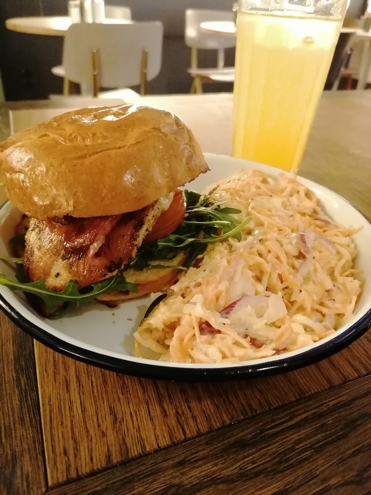 Nice and cozy place to have lunch/dinner. We were there between 12-15 h, which also meant that we could order from the lunch Menü. I ate a chicken burger: it was tasty, the portion was good, for the price (10.5eur) I find everything was alright. Definitely coming back