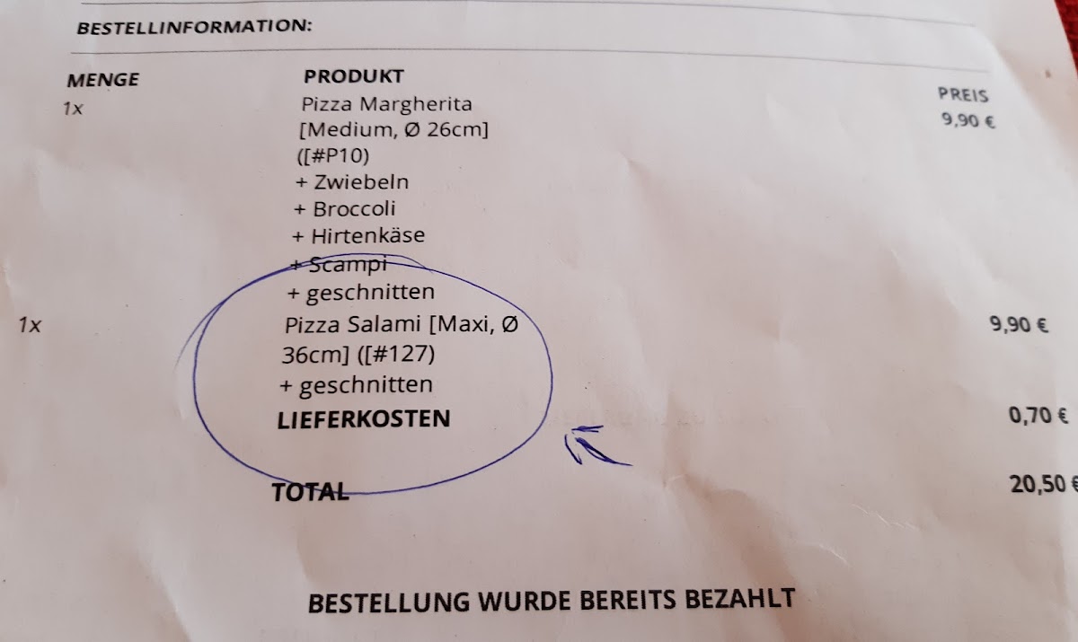 Insgesamt ein unglückliches Erlebnis. Ich kann Pizza Dream unter diesen Umständen NICHT weiterempfehlen.
