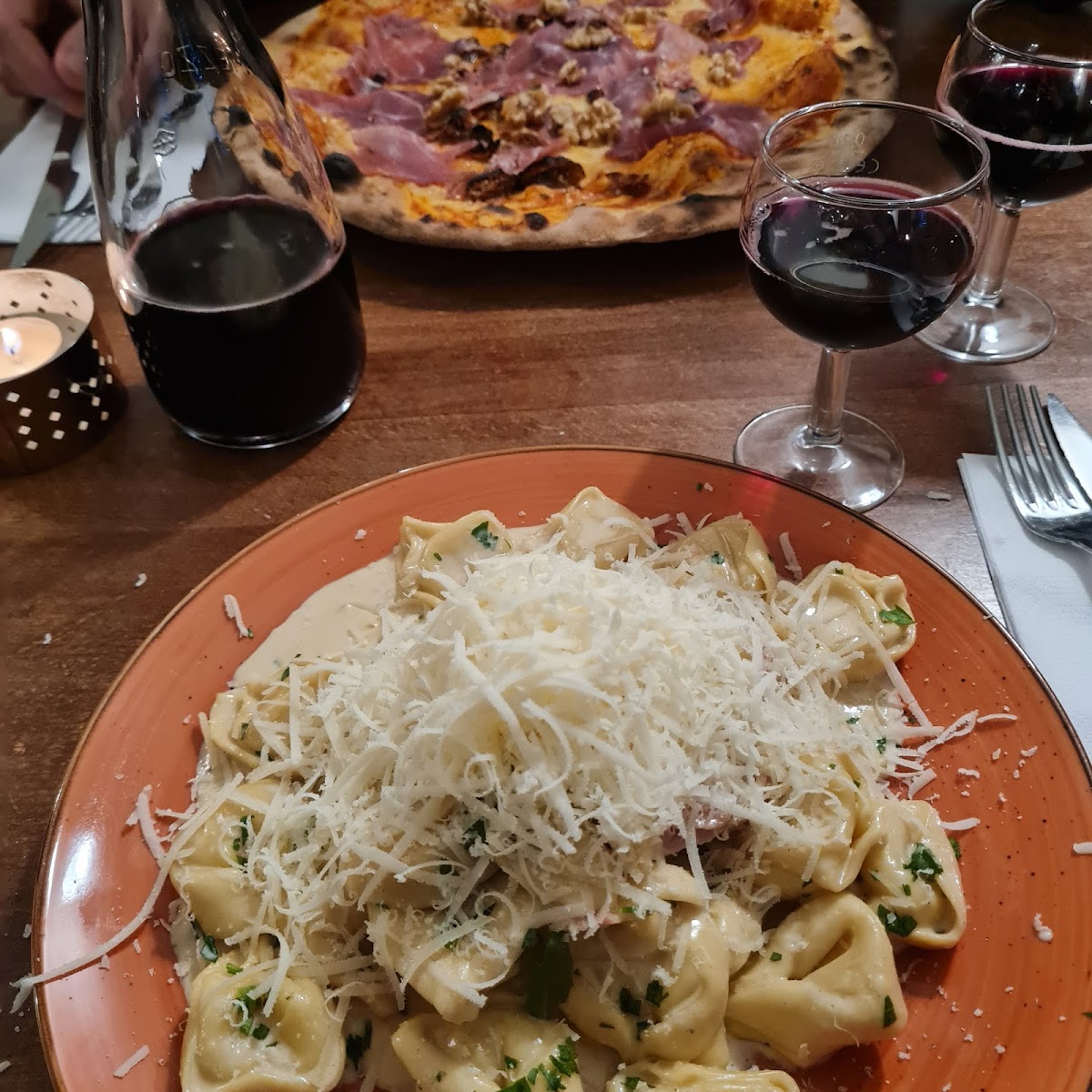 Fantastic authentic taste and proper portions both for pasta and pizza.