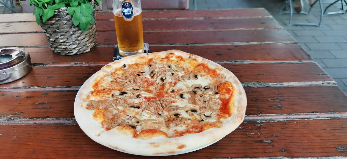 Good pizza and beer. Not so expensive. The service is neutral. Not so nice, not bad. I'm here second time. You can pay by card for order but only more than 25€. For example for big beer and pizza I paid 13€. I was full so it is totally enough for one guy. I recommended for fast order and fast recieving.
