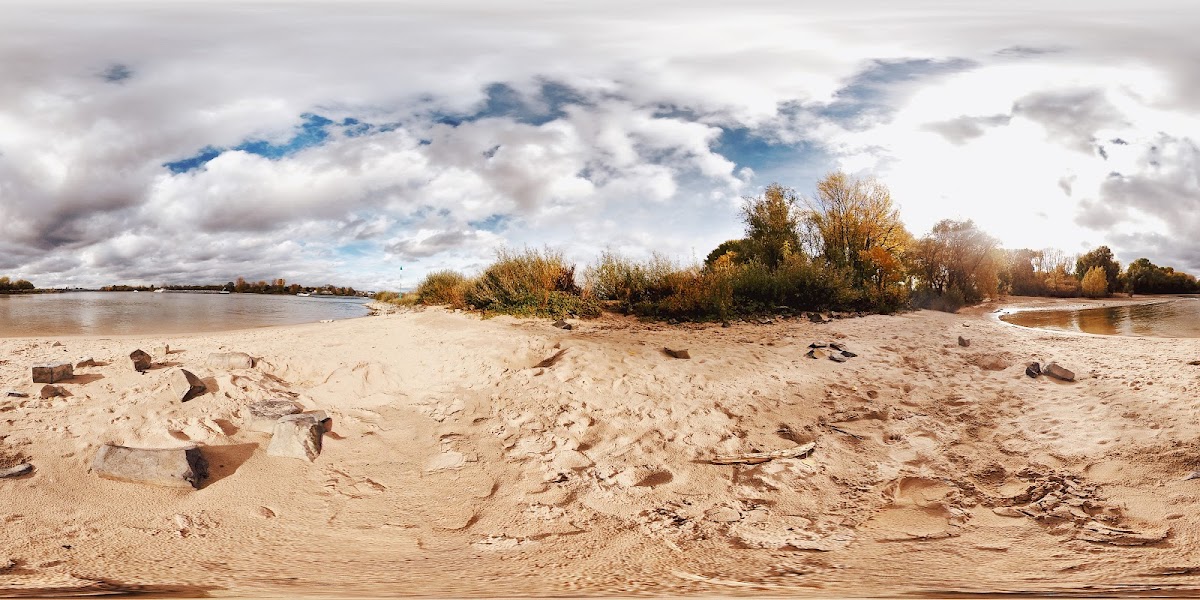 Right next to the Rhein, paths for walkers and cyclists. And happy dogs.