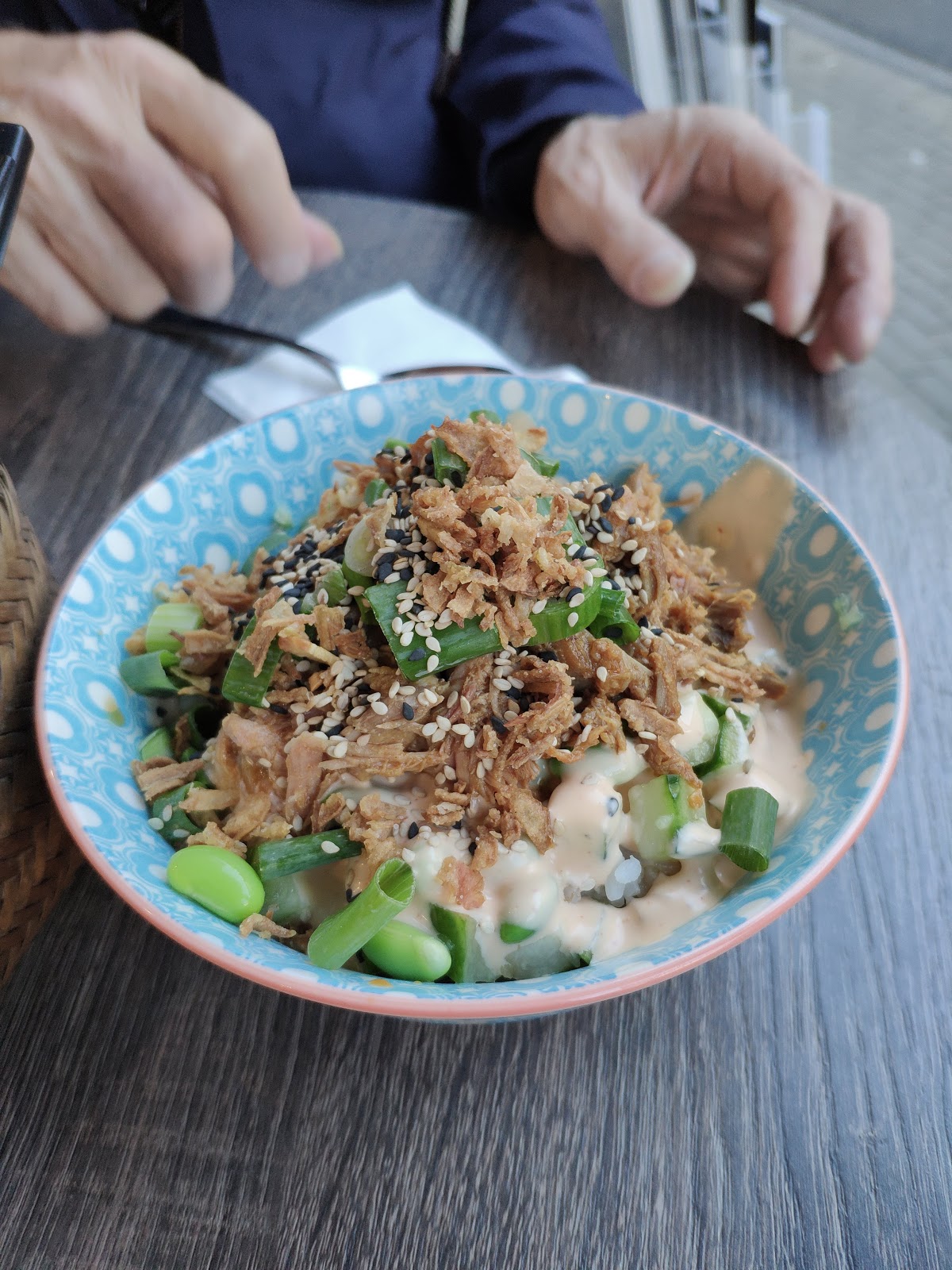Ordering food here was really not worth it. I have eaten Poke around Europe and this is the most disappointing experience. I ordered the Peking Duck bowl, but I got a regular Poke Bowl. I tasted weird because of the weird combination of vegetables with the Poke Bowl (tomatoes and crispy salad). The mochi was good, but one mochi is not worth 2 euros in my opinion. I do not think I will eat here again because of the prices, the wrong order and the weird combination of ingredients.
