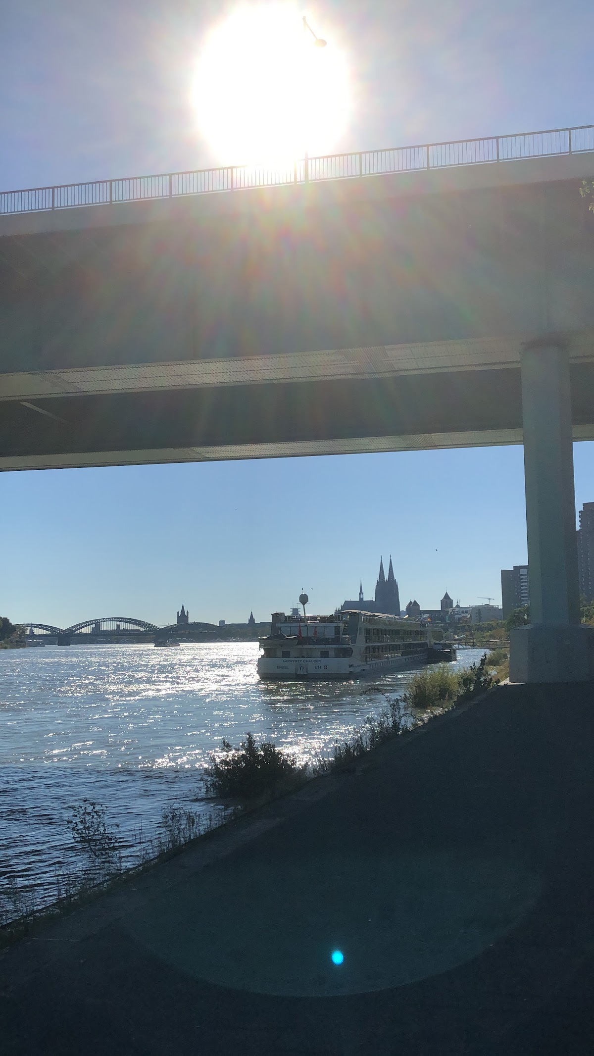 Middle of Cologne site, excellent public transport links and cycle paths to the city. Part of a huge grassland park next to the Rhine -perfect for dog owners. Book in advance to get good pitches. Electricity 50 cents p.kw. Water and waste are from a public amenity next to the entrance and NOT part of the campsite and not as hygienic as it could be but this is not part of the campsite We found the owners very helpful indeed. 14 euros for the pitch in a city, close parking but good environment, Think about it and appreciate what it is.