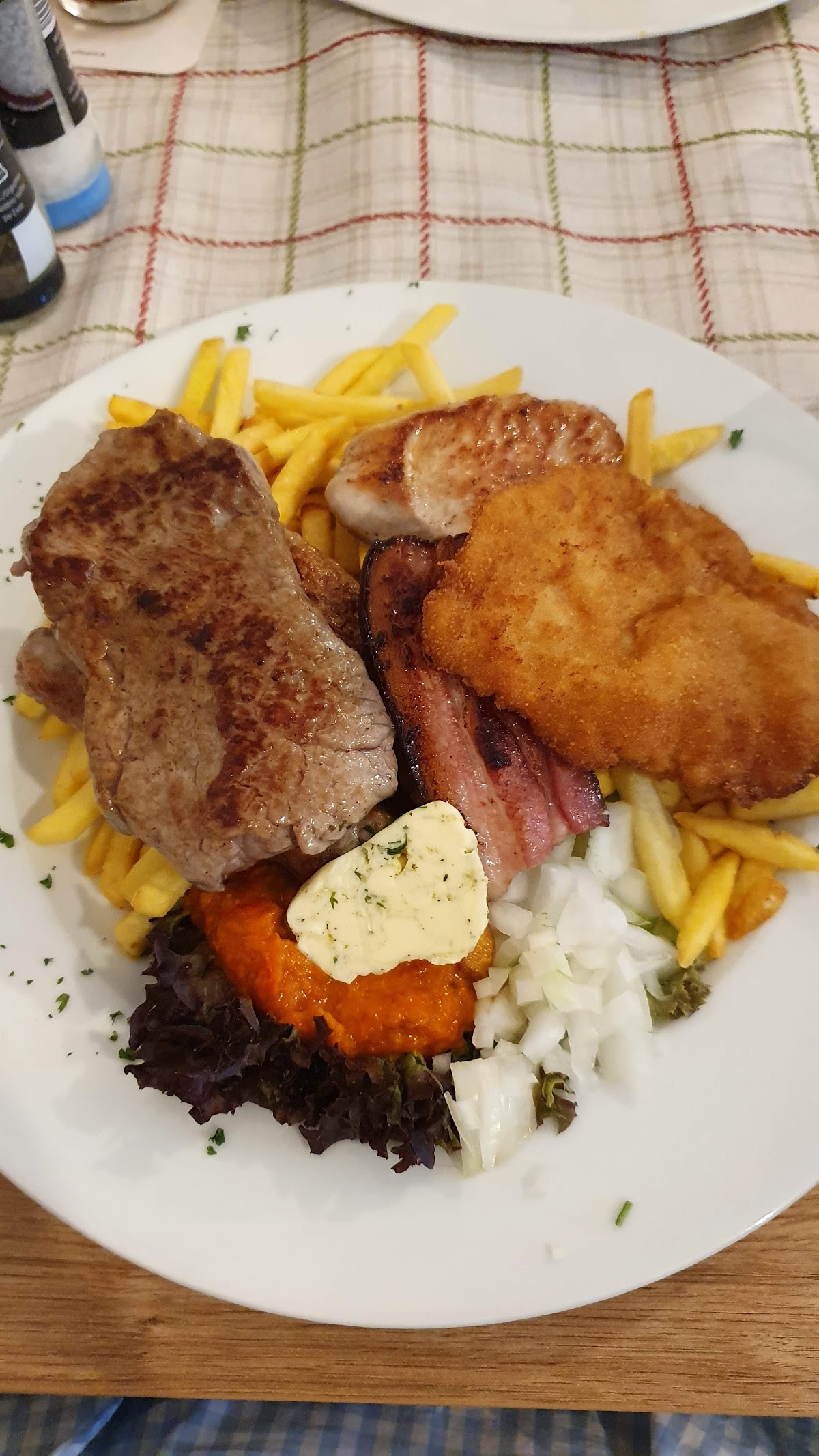 We ordered the small side salad, the farmer's schnitzel u0026 pork medallions. Everything tasted very good to us. Thanks to the kitchen staff. We would like to come again.