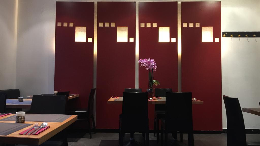 Schöner Gastraum mit zurückhaltender Dekoration. Zweckmäßige Bestuhlung. Bedienung aufmerksam