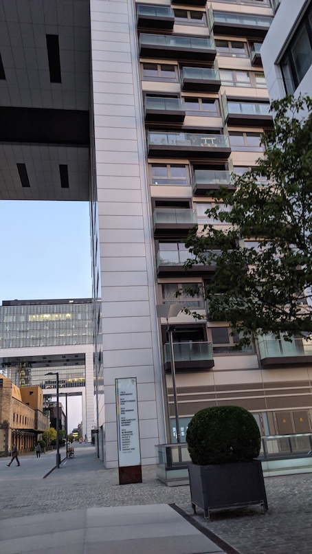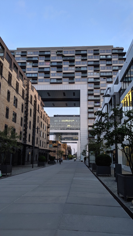 The Rheinauhafen is a gentrified area in what was the historic port and harbour area of the city. Much of the area seems to be offices for high tech and creative companies as well as the as attractions like the German Sport u0026 Olympia Museum, the margins and the inverted L-shaped Kranhauser buildings. A lovely area for walking about, although it's quite quiet in the evenings and weekends.
