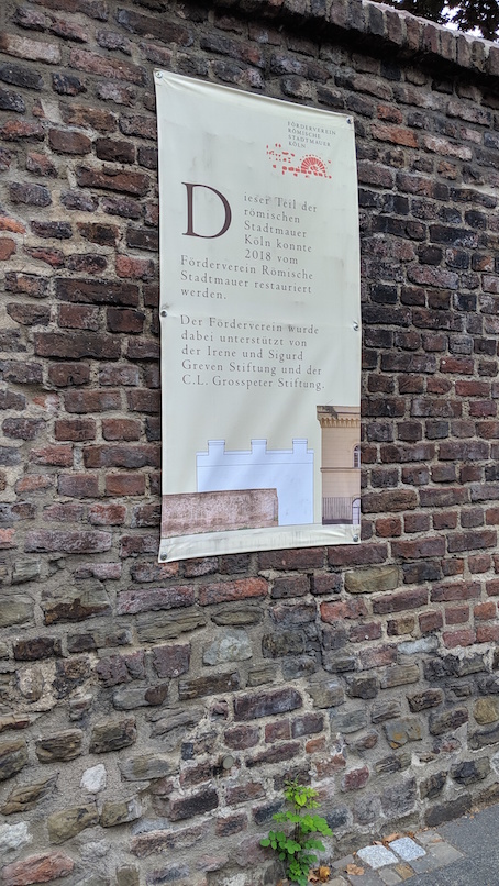 The Romische Stadtmauer is a 160 metre stretch of what remains of the old Roman city wall. Not much to look at. Take a quick look if you're in the area or visiting Kölnisches Stadtmuseum, but otherwise, don't go out of the way to see it. There are better exhibits in the Roemisch Germanisches Museum.