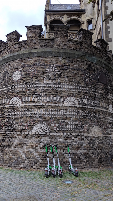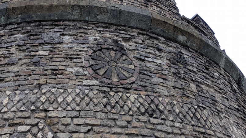 As others have already mentioned, this tower was part of the old Roman fortifications. The city has certainly done a good conservation job as the tower is in remarkably good condition and many of the decorations such as geometric patterns that adorn the exterior are well preserved.