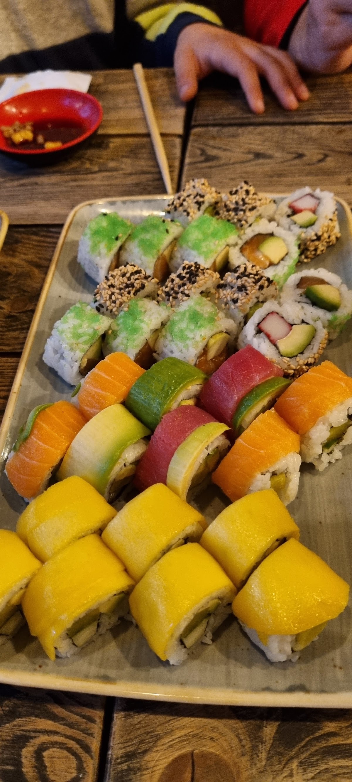 Excellent food. The sushi pieces were very well made, very tasty and abundant. Personally, I liked that almost no piece had Philadelphia cheese. The menu proposition is interesting, although a bit towards the steep side of prices. I would definitely go back and recommend it.