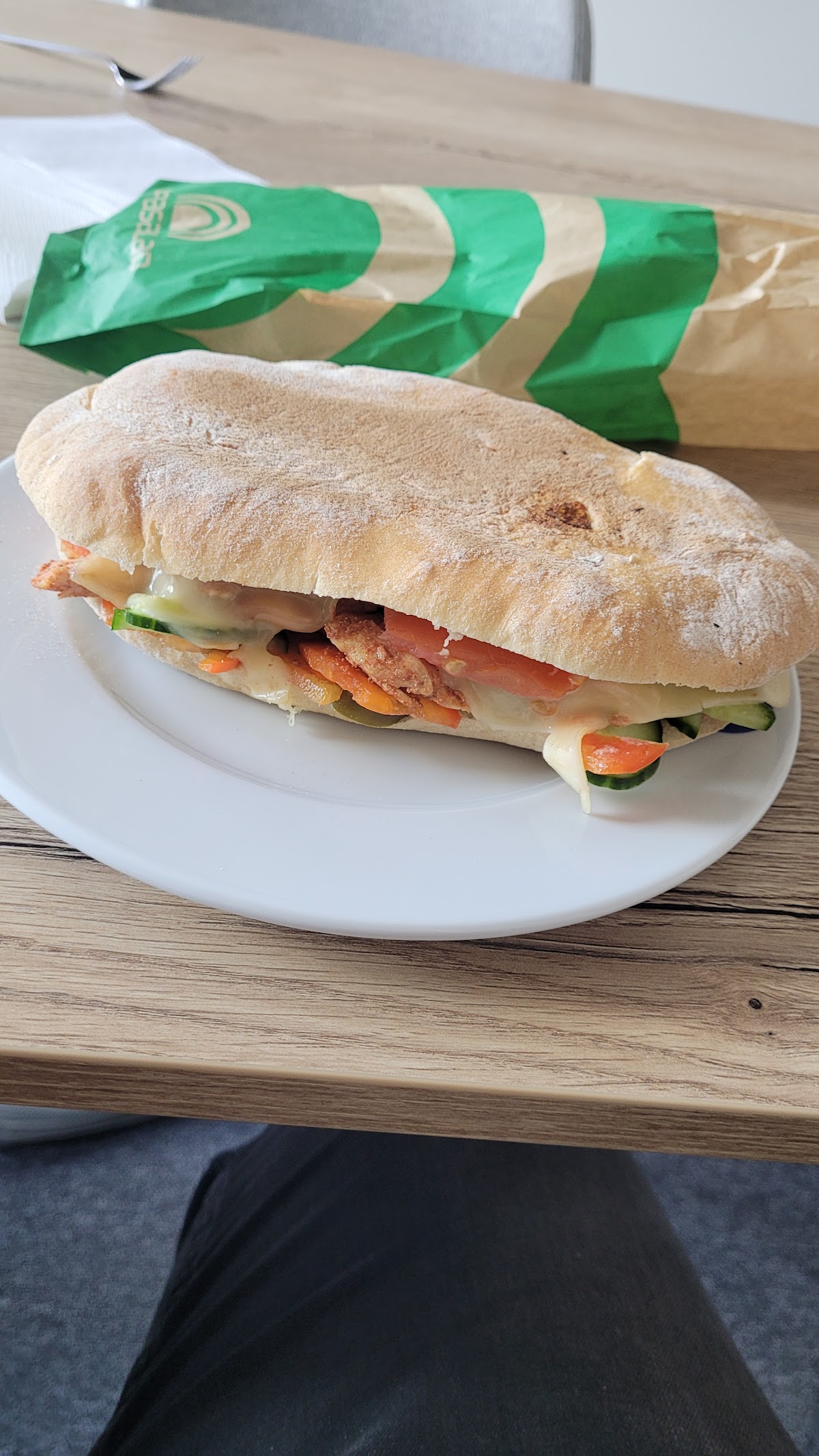 Erinnert mich etwas an Subways, sowohl vom Logo, der Farbe als auch der Theke her. Jedoch gehe ich hier wesentlich lieber hin.
