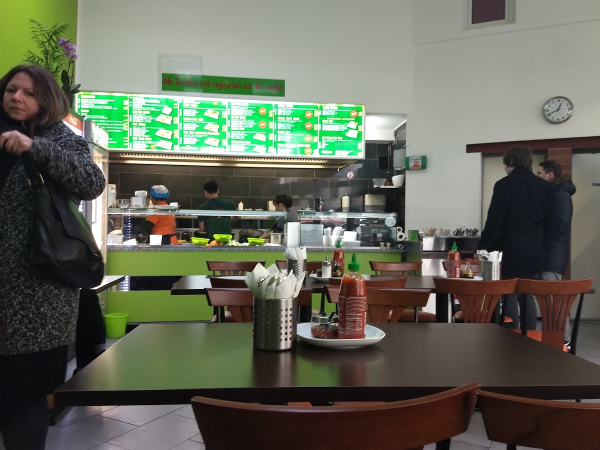 Very good Thai food at a very reasonable price. It is a bit Imbiss style, but bright and clean with seating both inside and outside (in warm weather). No tea or beer, however, but enough other drink options (the canned mango juice is tasty!).