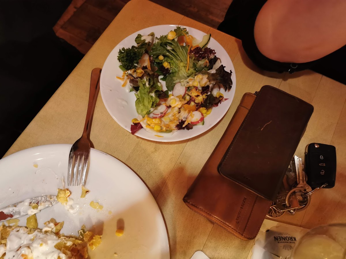 (Translated by Google) Friendly corner pub with delicious beer! The food was good too (we each ate a salad), friendly service. We sat outside so I can't comment on inside.
