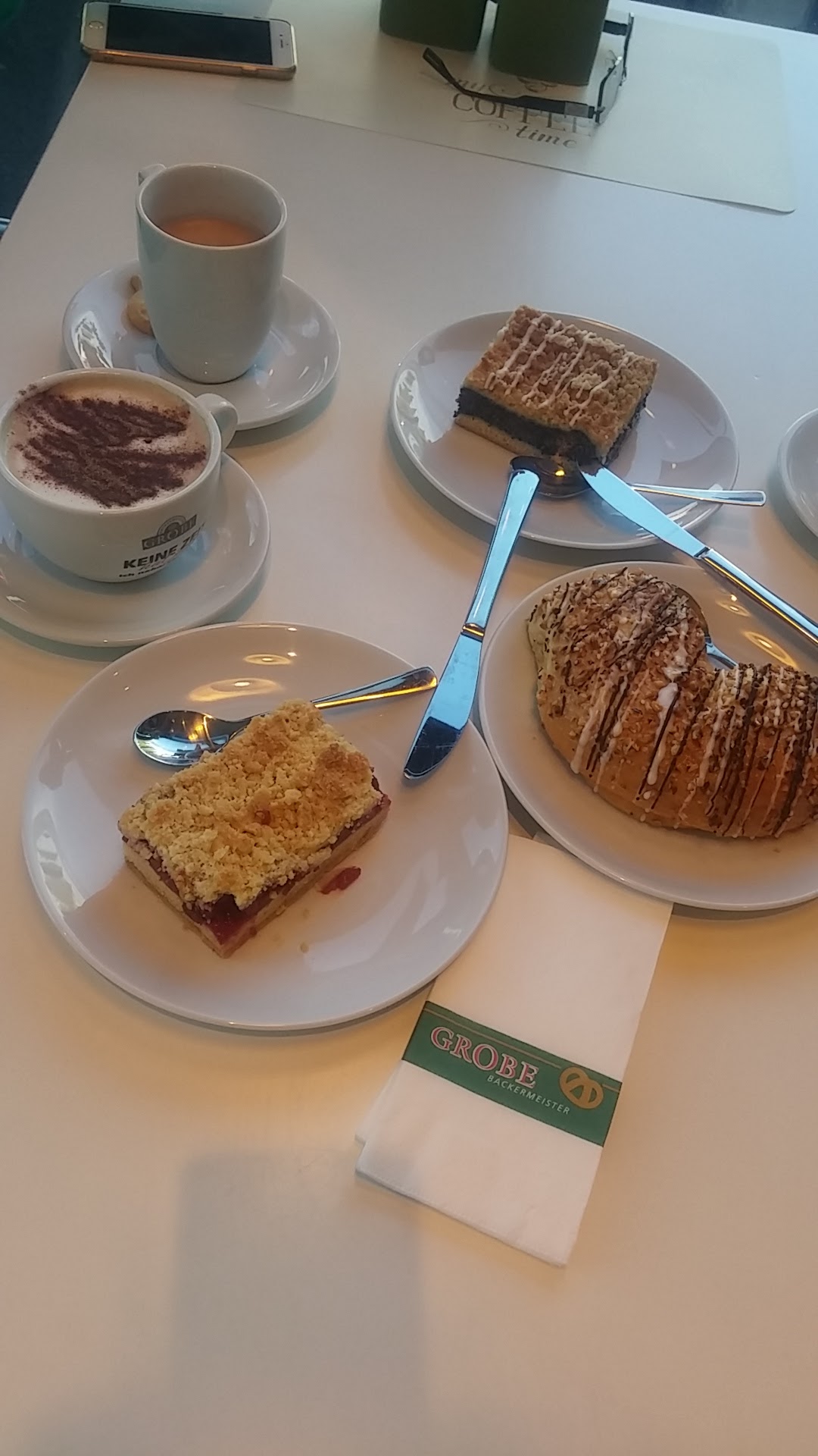 Ich bin kein großer Fan von Grobe. Unterschiedliche Körnerbrötchen, schmecken aber alle gleich. Das Brot ist ok. Unterschiedliche Plattenkuchen probiert. Das Obst muss man suchen und es schmeckt nach Backtriebmittel. Für meinen Geschmack, ist nur ein kleiner Teil des Kuchens empfehlenswert.