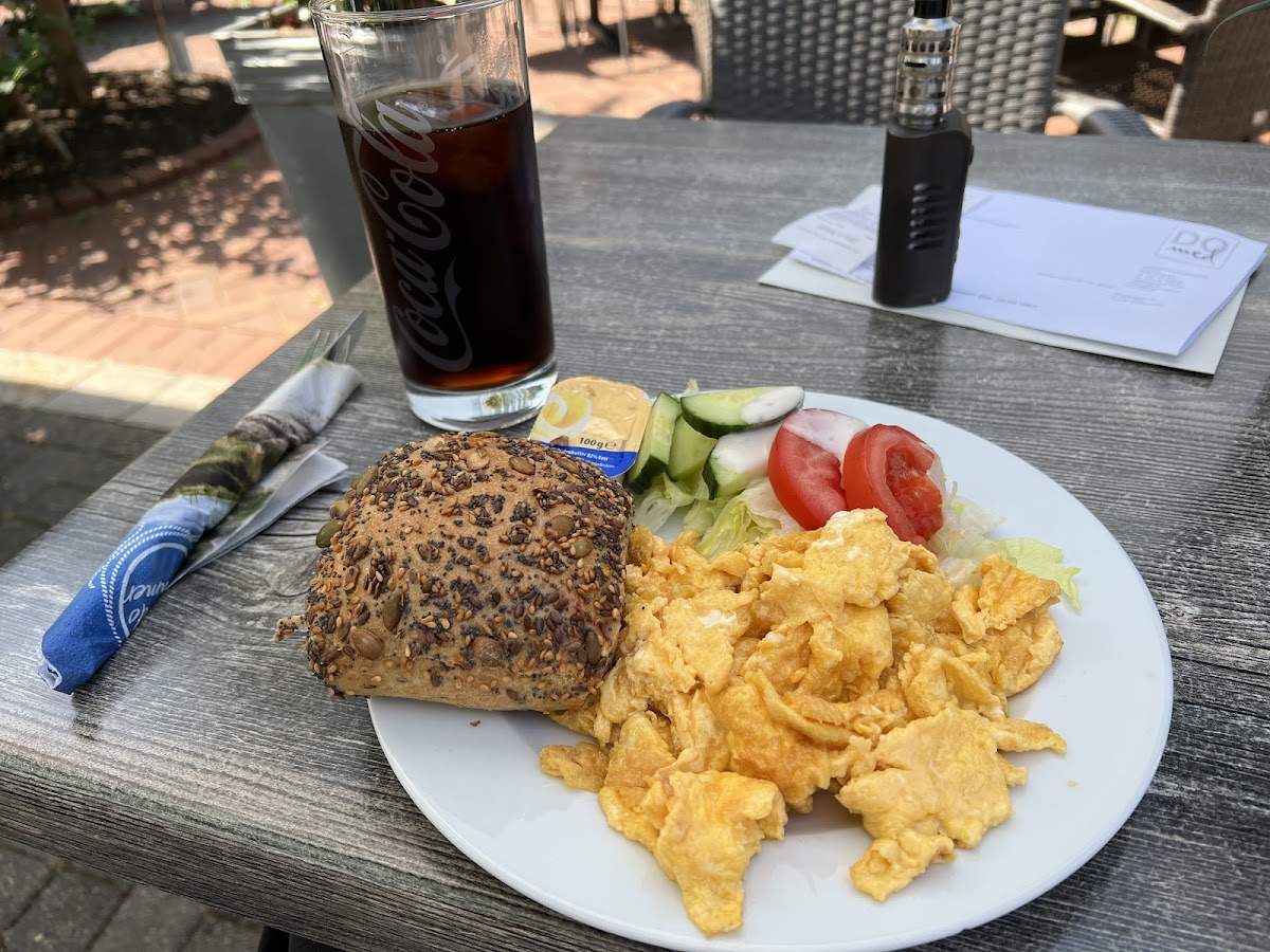 (Translated by Google) I'm sitting here in the cafe for the first time and I notice a waiter who is very, very nice. He immediately sees if a table is wobbling and ensures that it is corrected. He worries about the safety of the guests and makes them aware that the handbags could be stolen. Such attention is very, very rarely seen these days. Hence the highest score from me. We would like to come again.