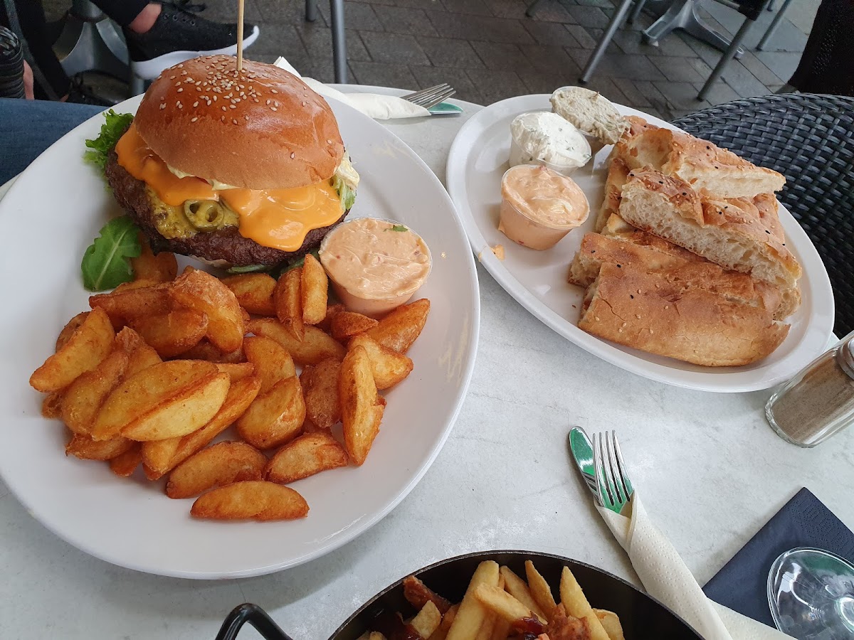 We were a group of six and ordered five different dishes. Just the wedges were good. The meat of the burgers wasnt hot and the buns far too crisp, they fell apart into crumps, when you ate it. The gambas didnt taste fresh and peeling of the skin took too long. The steak was overcooked and the jacked potatoe too hard. We paid with beverages almost €150 altogether, but they didnt offer any compensation, when we mentioned it.