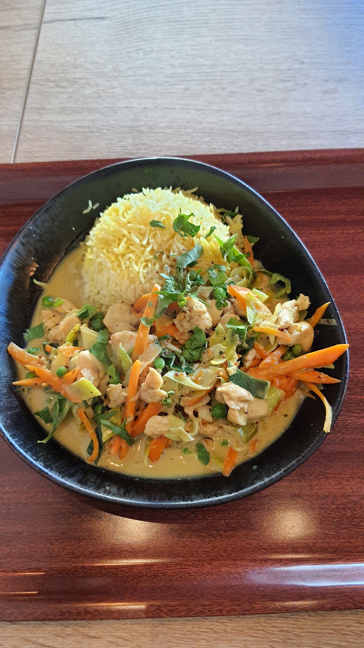 Reasonable price and tasty. As I cannot eat very spicy, I ordered Kerala Curry with chicken. It was very delicious and not so spicy, just the correct degree. The rice and vegetables were fine. The amount of food was also generous. I also drank a Mango Lassi. I recommend it. Specially if you order a spicy and hot menu. The staff was very polite.
