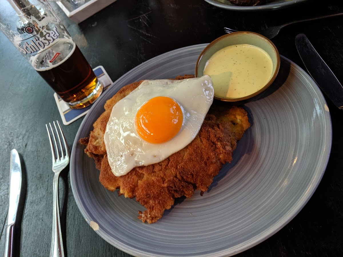 It's looks like a modern restaurant from the street, but really classic German dishes. A lots of it. A big selection of schnitzels - and beer.