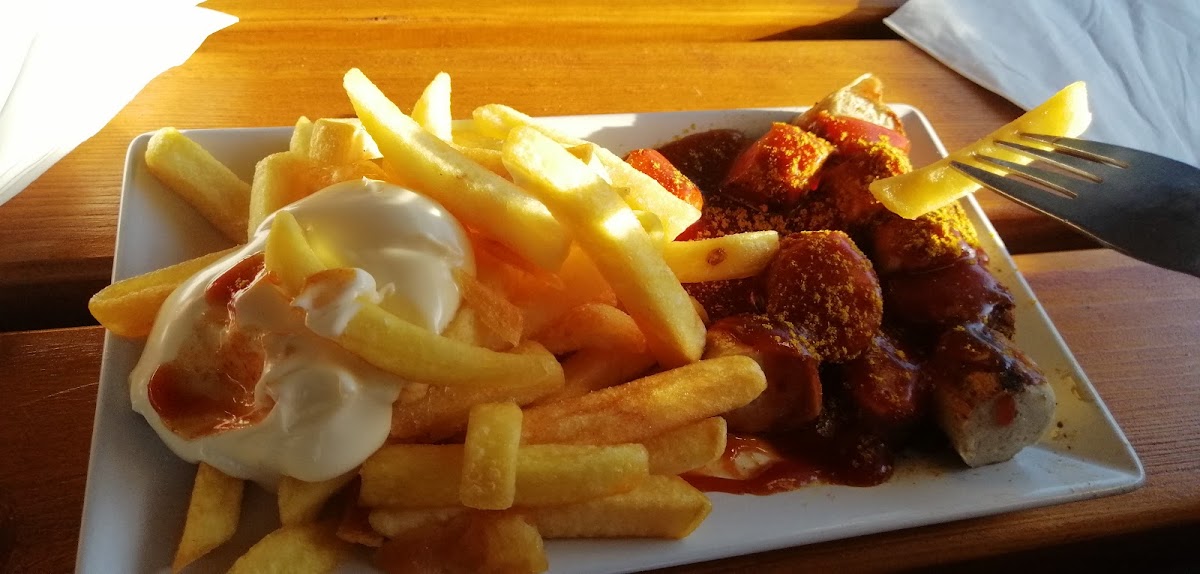 A nice little restaurant (Pommes Bude is not the right term here in my opinion) where you can sit inside and safely outside even when it rains. There are enough parking spaces or you can park briefly in the Aldi car park next door. Very nice courteous staff and the prices are typical for the area... See you again soon...