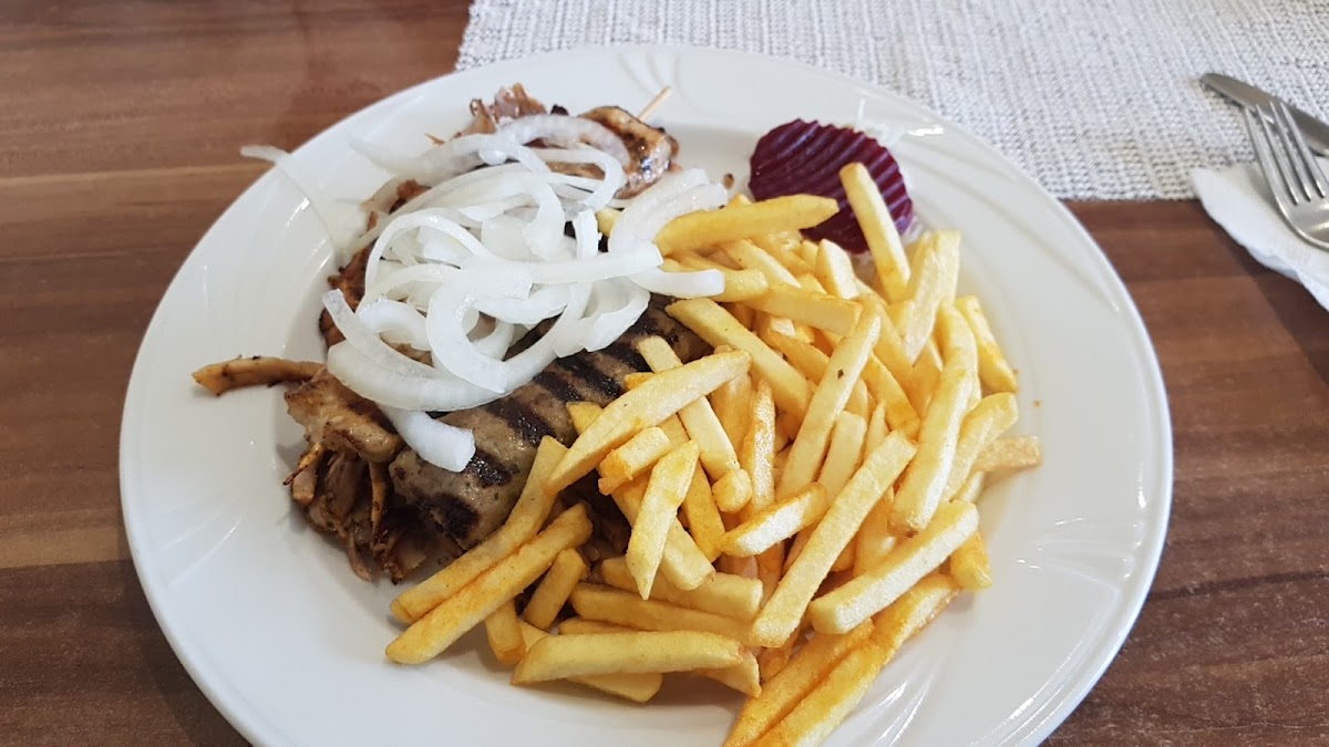 (Translated by Google) The dishes are delicious, I just think that the two ladies behind the counter get so hectic when there are more than two customers in front of the counter....sometimes people forget. Like the mayo on the fries, the onions in the gyros or the salad as a whole, it's very good and tasty there. Therefore 4 out of 5 stars.