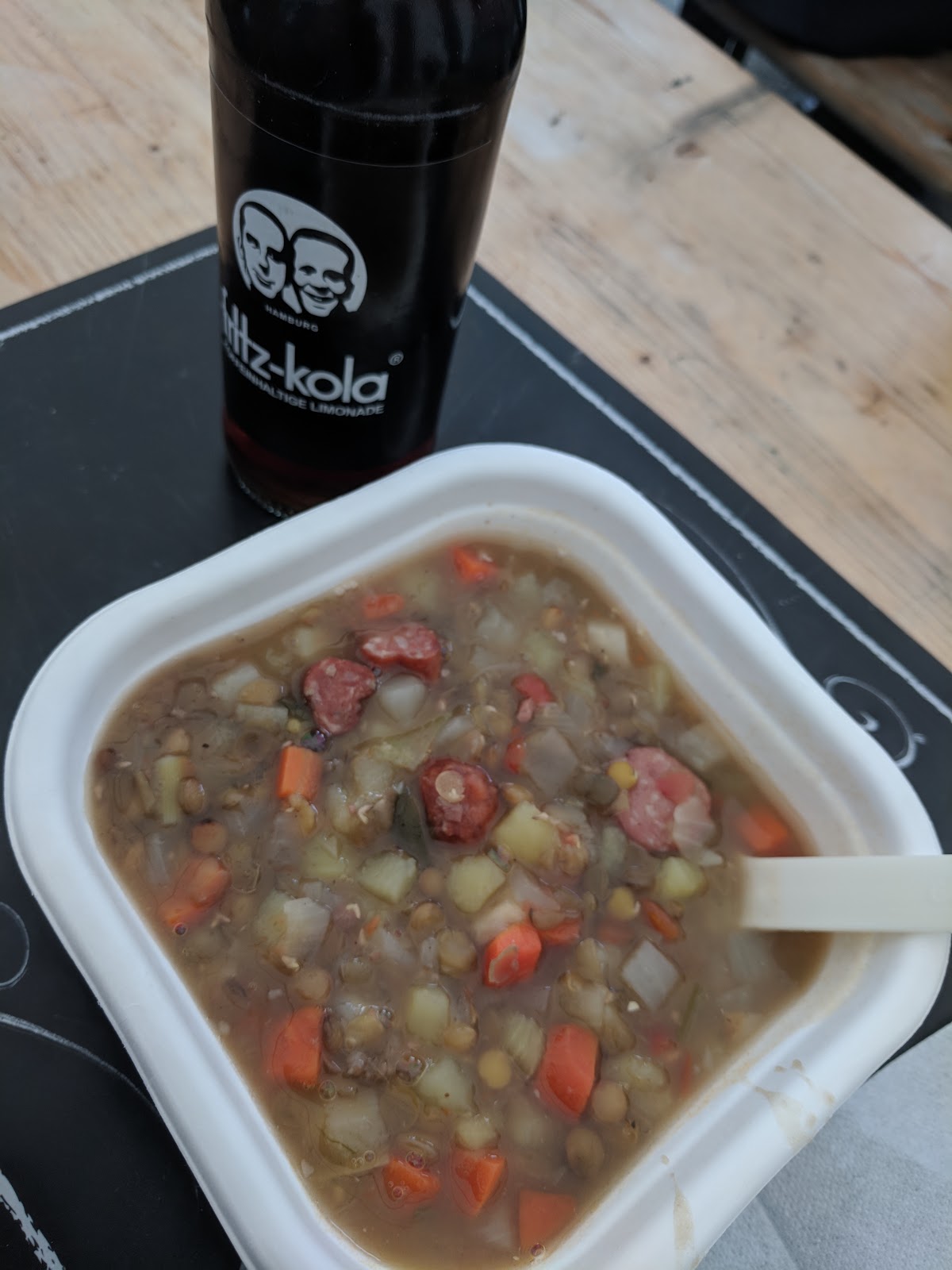 Positiv: Bei Regen kann man sich in einem Zelt setzen.