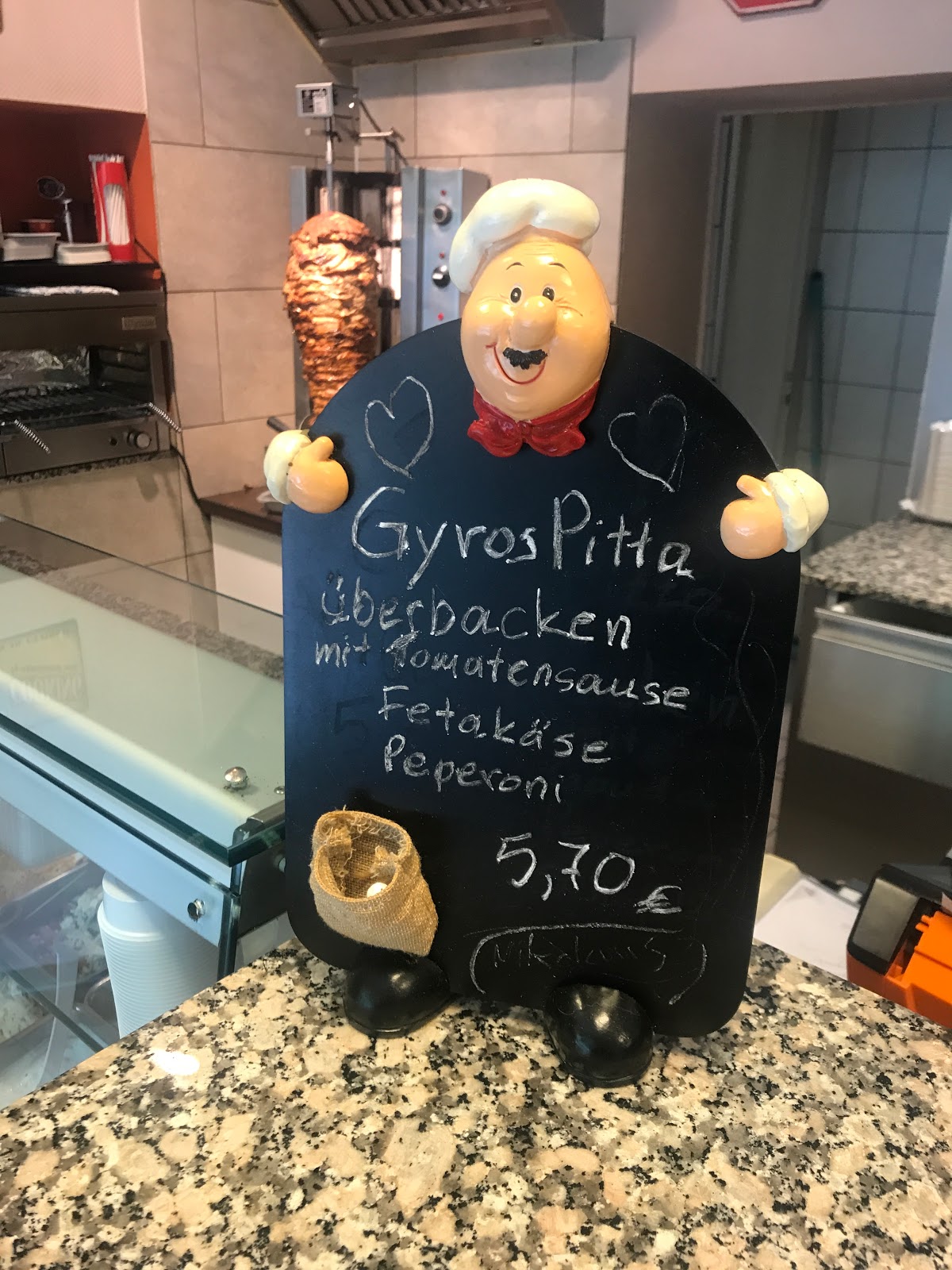 (Translated by Google) The taste is ok, but very strange conditions with "Gyros with Tzatziki". It was definitely the other way around. I would have expected the meat in the larger compartment and the sauce in the smaller one.