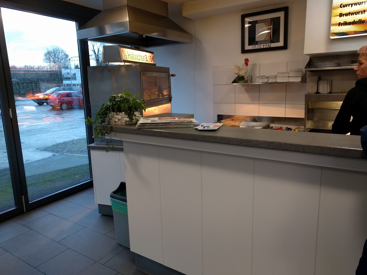 Ein einfacher Schnellimbiss wo es einige klassische Sachen wie Grillhähnchen , Frikadellen , Hotdogs , zwei Schnitzelvarianten und natürlich die Currywurst gibt . Sehr lecker und das Pteis - Leistungsverhältnis stimmt. Diesen Schnellimbiss gibt es seit über 40 Jahren was auch etwas über das Essen aussagt.