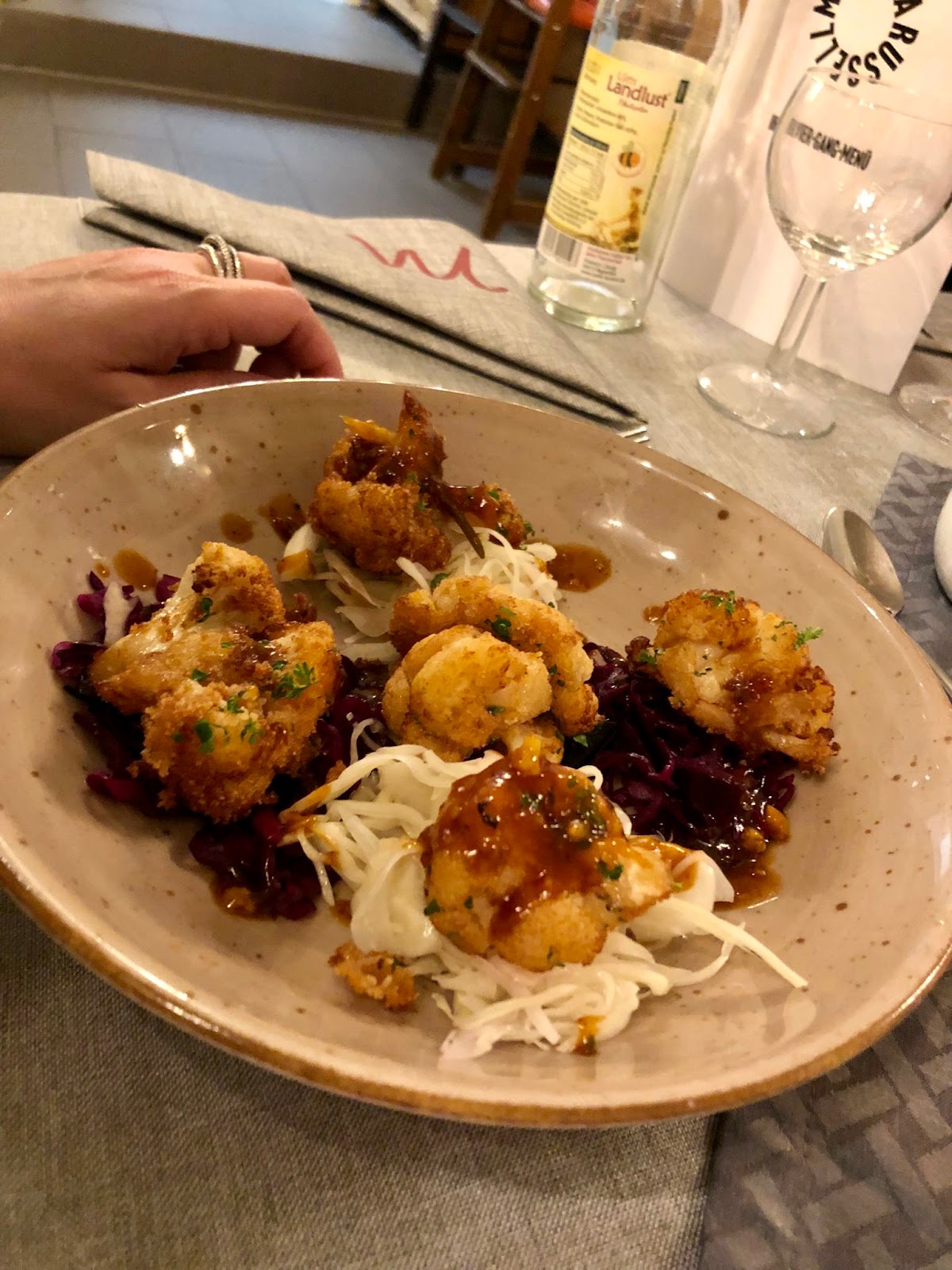 Wir waren zu sechst zum Menükarussel dort. Das Menü bot diverse Wahlmöglichkeiten, die wir komplett genutzt haben. (Hummer, Lammcarree, Vegetarisch) Besonders hervorzuheben war neben dem sehr leckeren und optisch ansprechenden Speisen, der sehr aufmerksame und freundliche Service, der immer zur richtigen Zeit präsent war????. Das hat einen sehr schönen Abend mit Freunden ergeben.