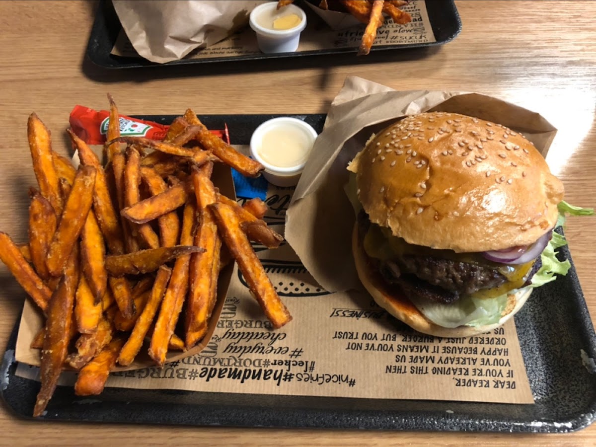 I ordered a cheese burger. The bun was very fresh and soft. The combination of the ingredients was nice. The pattie (beef) was completely cooked which I like but some might like it a bit rare. So tell them to have it not completely well done. The fries were also good. They also accept the EC cards which is rare here. The only thing was that the amount or volume of the meat was not so big which is absolutely OK in regards to the price. The prices are very reasonable.