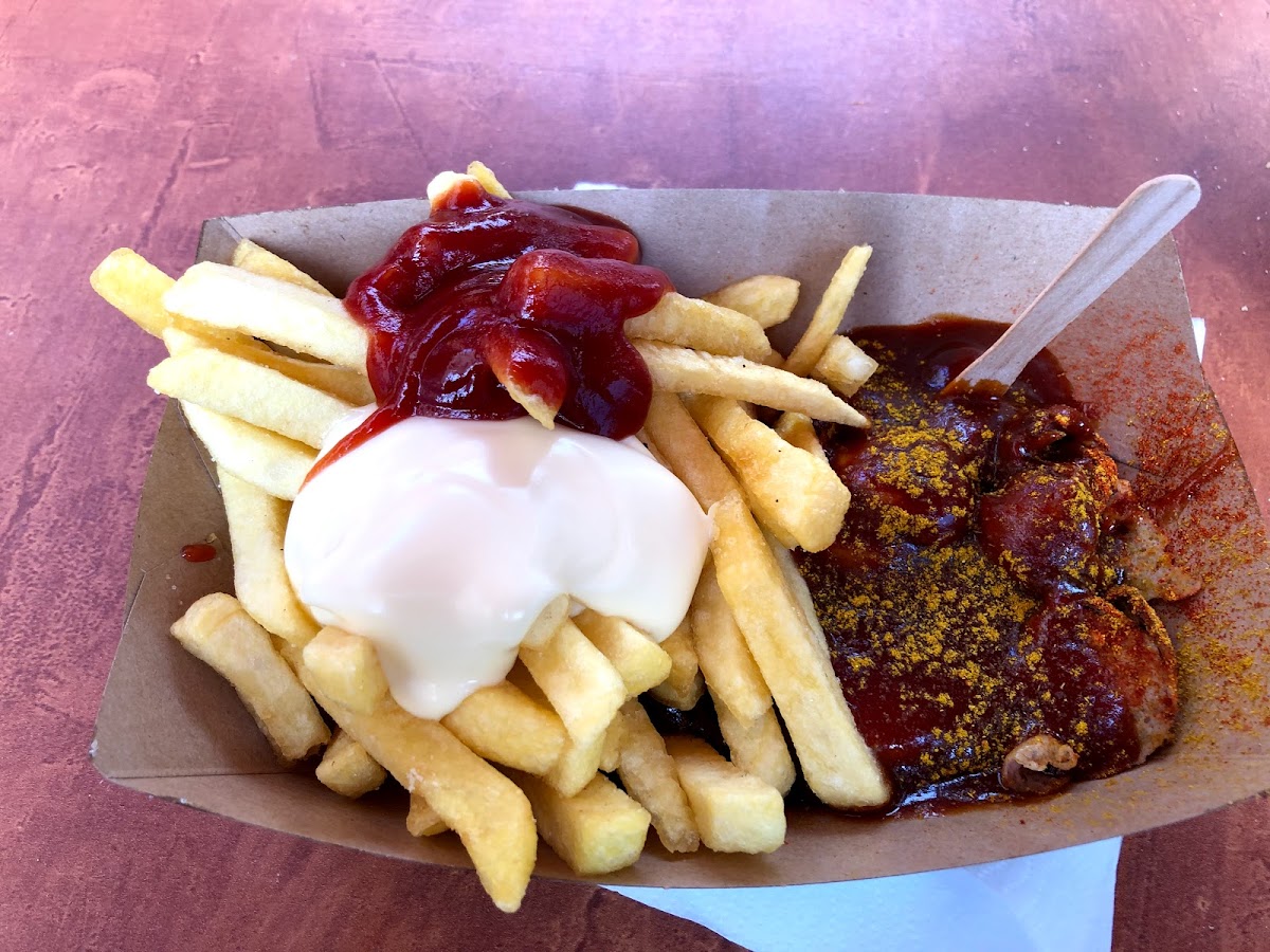 So last time in town I was told that I had to try currywurst. Honestly I was not impressed. However I decided to try it again and I am glad that I did. I heard that this stand is the best and while there was a bit of a line, I decided to wait in it. I am glad that I did! I really enjoyed my currywurst and Pommes. Everyone that works here is so nice and friendly. They took good care of me. Might have to go one more time while I am in town.