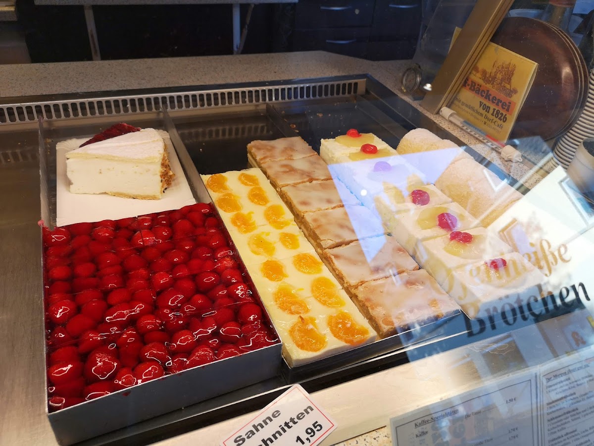 hier gibt es auch lecker selbstgemachtes herzhaft, z.B. Frikos, Schnitzel, Nudelsalat, Kartoffelsalat und noch mehr, und lecker Kuchen, Torte, Brot und Brötchen sowieso!! alle nett und freundlich, drinnen Cafe u. wenn's nicht regnet auch draußen. Auch Sonntag u. Feiertag????????