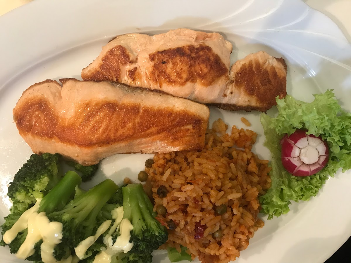 Ordered Solomon grill , chicken and veggie stuff .. taste is delicious. The ambience is excellent.. the staff is not helping