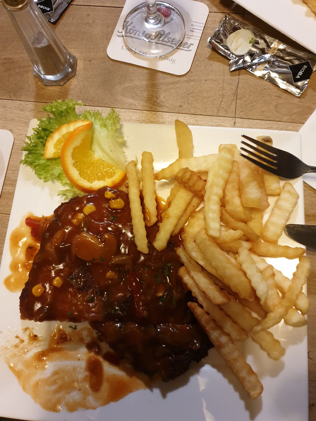 Die Kegelbahn ist völlig in Ordnung und die Bedienung ist auch nett. Das Essen ist ohne abwertend klingen zu wollen „Kneipenmässig“. Nichts aussergewöhnliches aus der Friteuse. Kartenzahlung ist nicht möglich. Alles in allem solide drei Sterne.