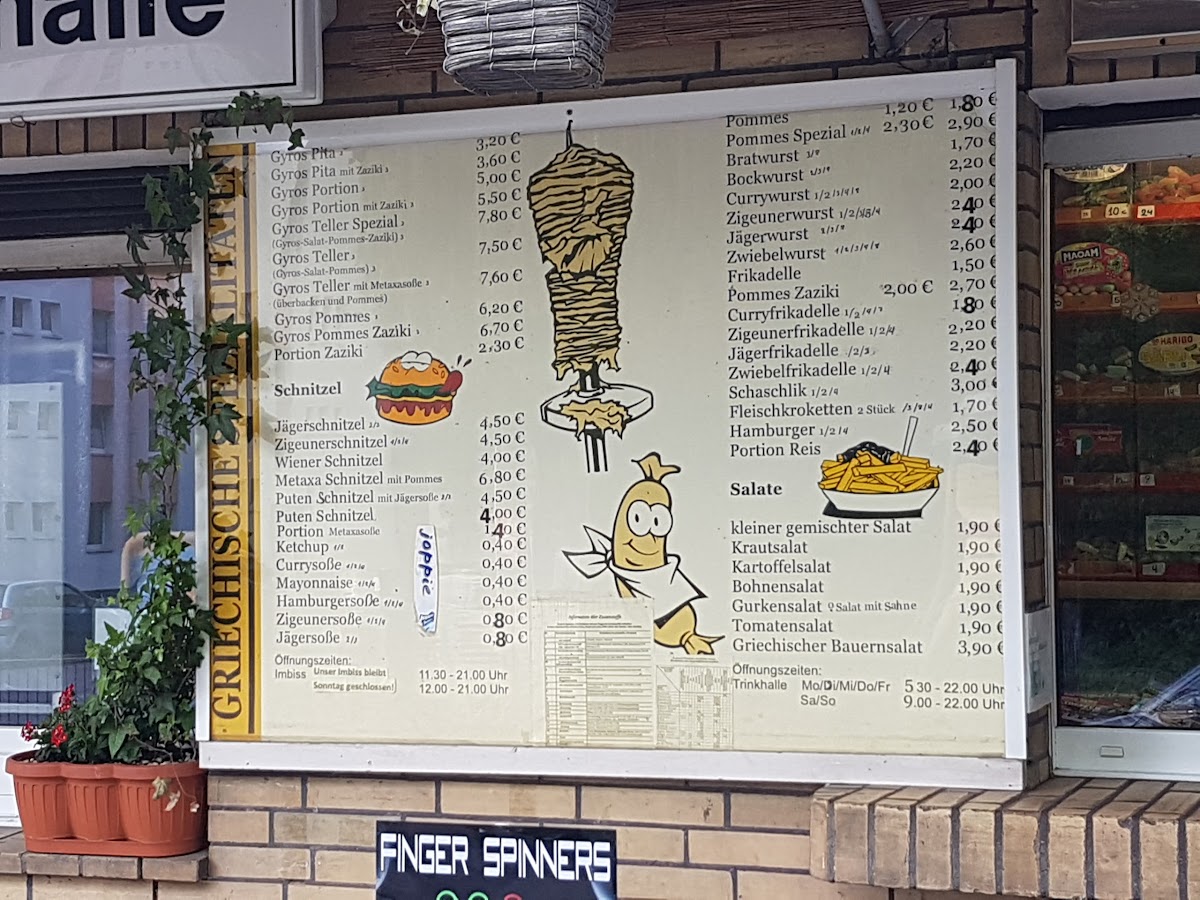 Ich war heute das erste Mal dort und habe eine Gyros Pitta gegessen und einfach nur super lecker . Meine Frau hat eine Jägerwurst mit Pommes gegessen, auch Sie fand es sehr lecker.