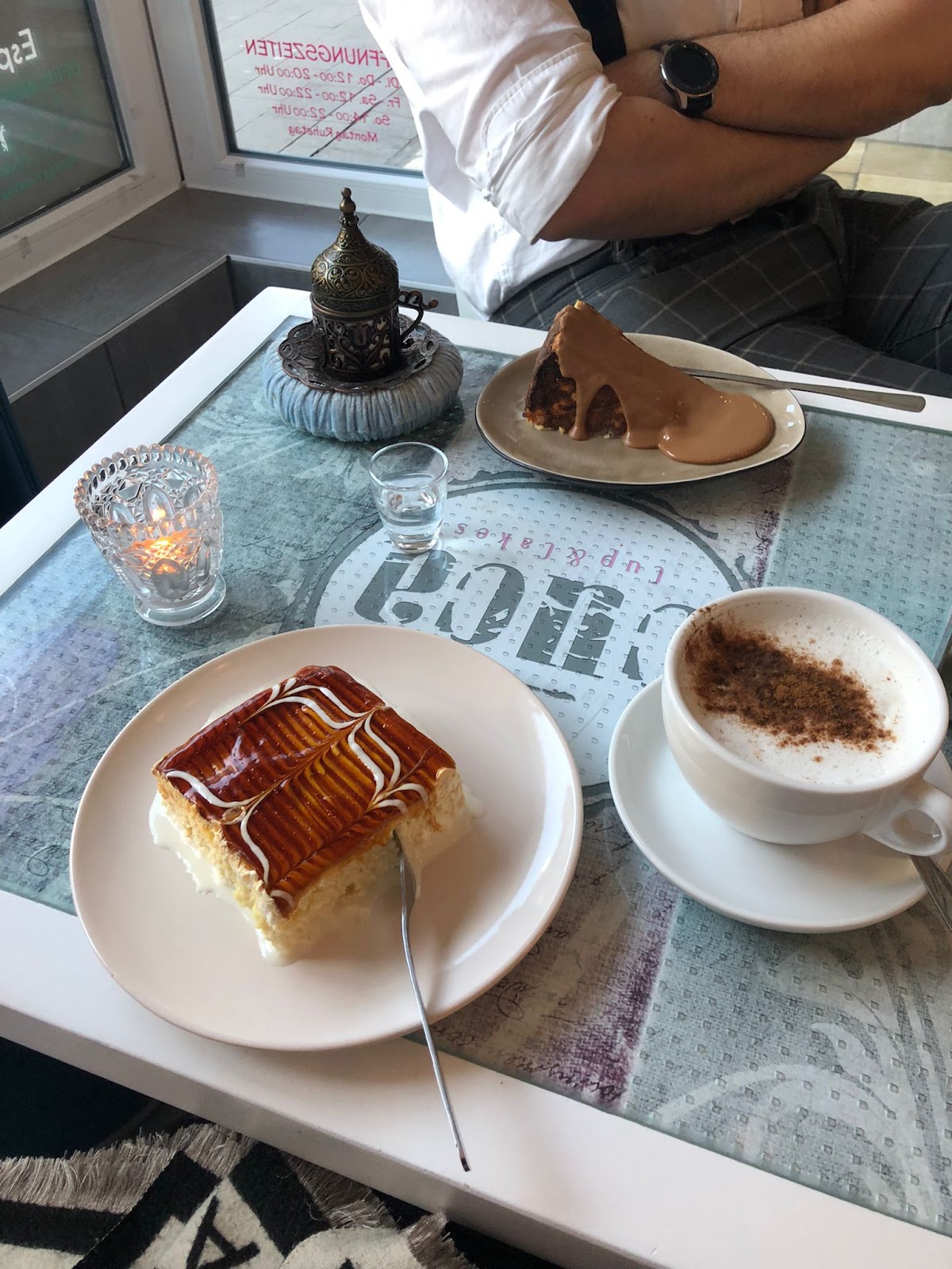So i went there twice already, the place is not in the best part of Duisburg but was diff worth it. They offer San Sebastian Cheesecake with choclate sauce (and more options like Lotus on weekends), milk cake (tres leches) and much more.